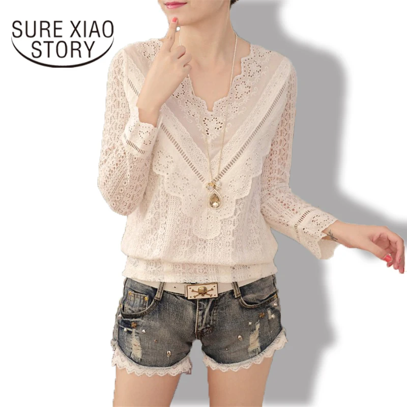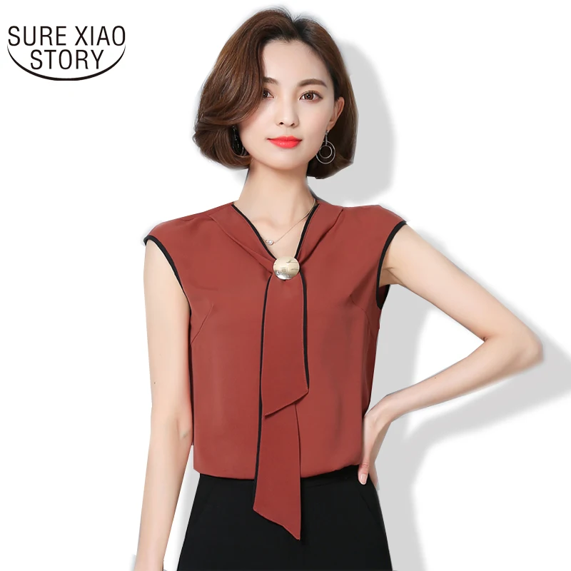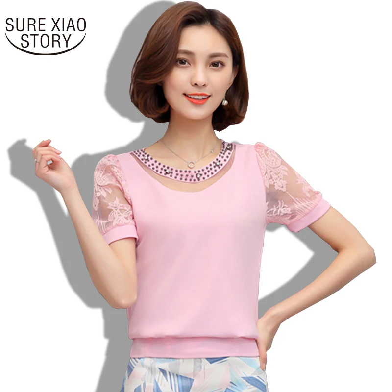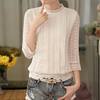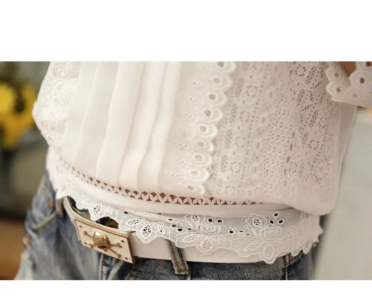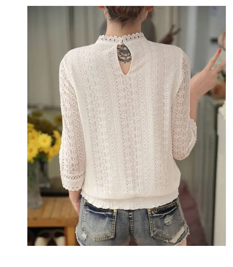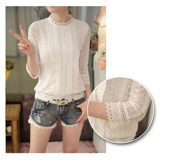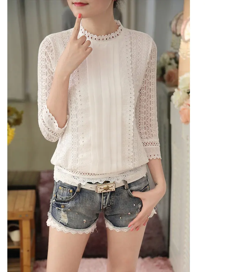 New Women Blouses Korean Style Ladies Chiffon Shirts 2016 Autumn Three Quarter Sleeve Stand Collar Clothes Plus Size Tops 61J 25