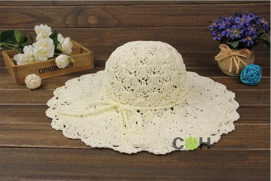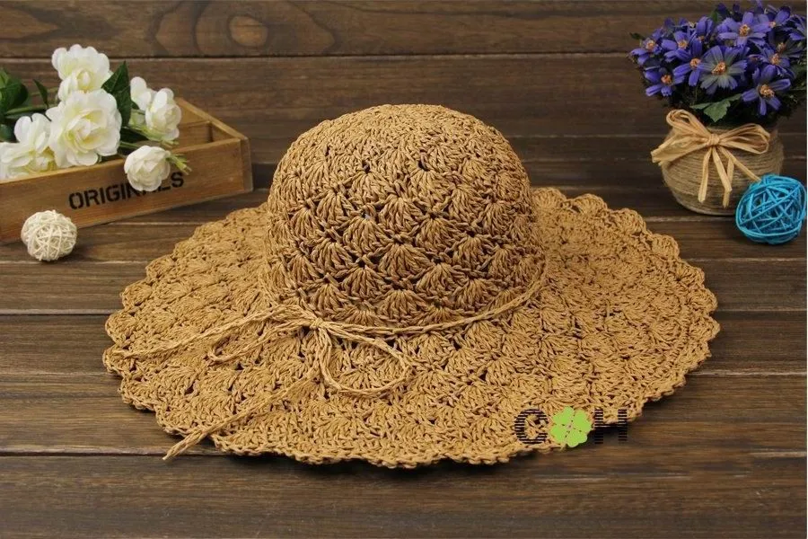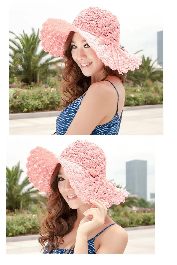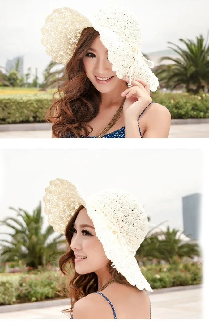 new Women Summer Beach Straw Sun Hat Sombreros de Playa Mujer Foldable Women Dress Hats Ladies Crochet Fedoras Chapeu Feminino