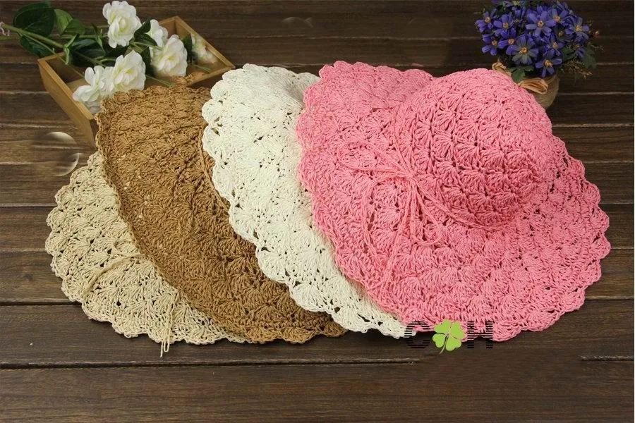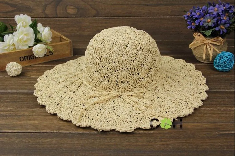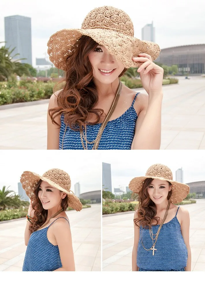 new Women Summer Beach Straw Sun Hat Sombreros de Playa Mujer Foldable Women Dress Hats Ladies Crochet Fedoras Chapeu Feminino