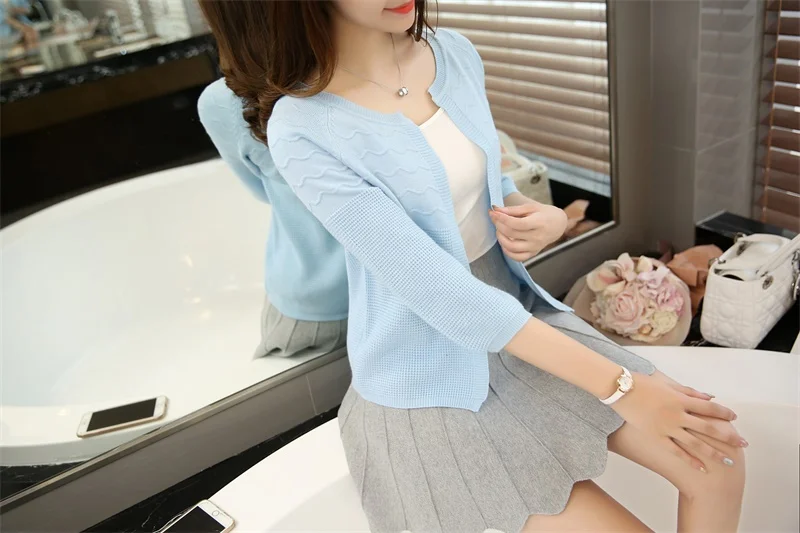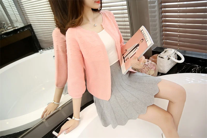 New Women Sweater Spring 2018 Autumn Winter Fashion Elegant Peach Embroidery Slim Girl’s Knitted Cardigans Tops Female Cardigan