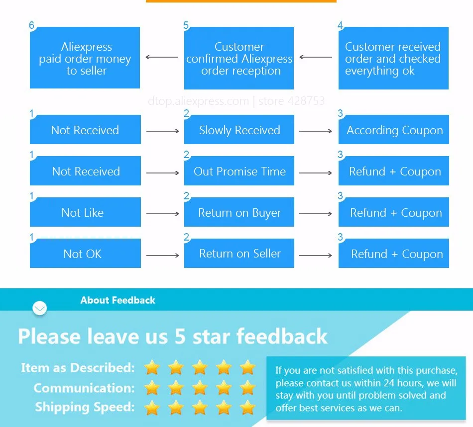 • If you did not receive the product within the guaranteed time( 45 days not including 2-5 day processing) you can request a refund or a reshipment.