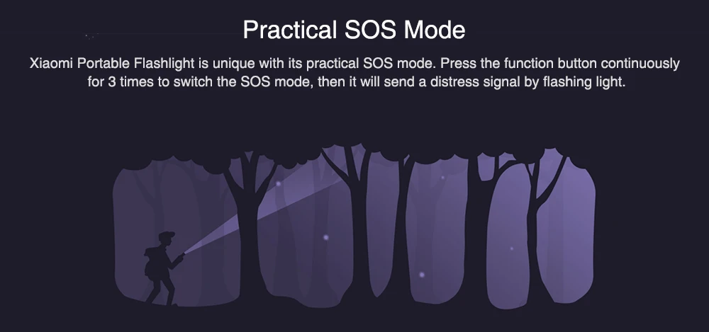 Xiaomi Portable Flashlight is unique with the SOS mode. Press the function button continuously for 3 times, then it will send a distress signal.