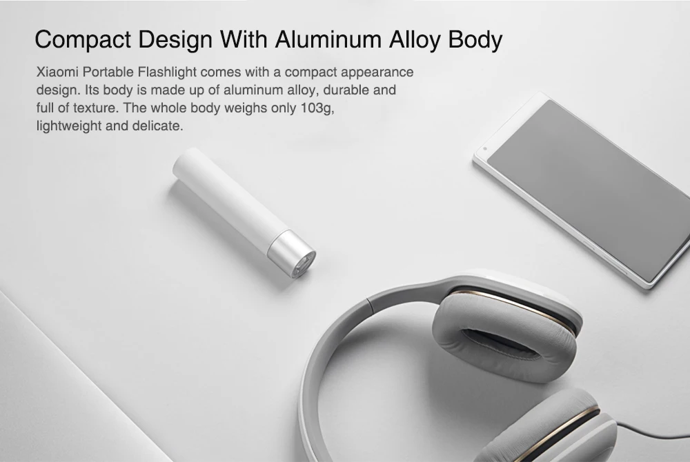 With its mini size, Xiaomi Portable Flashlight weighs only 0.103kg, which is protable for you to bring it outside.