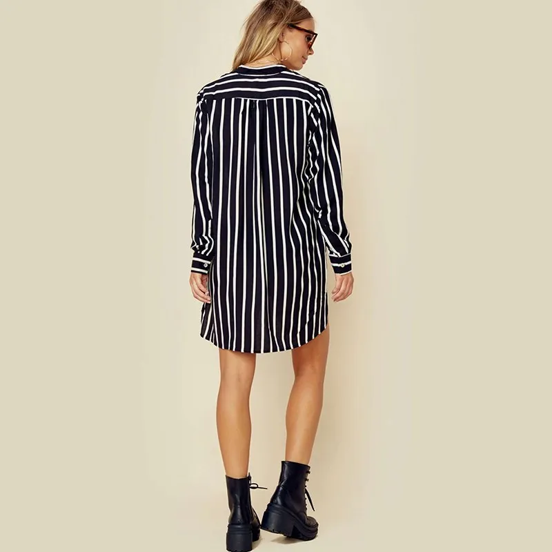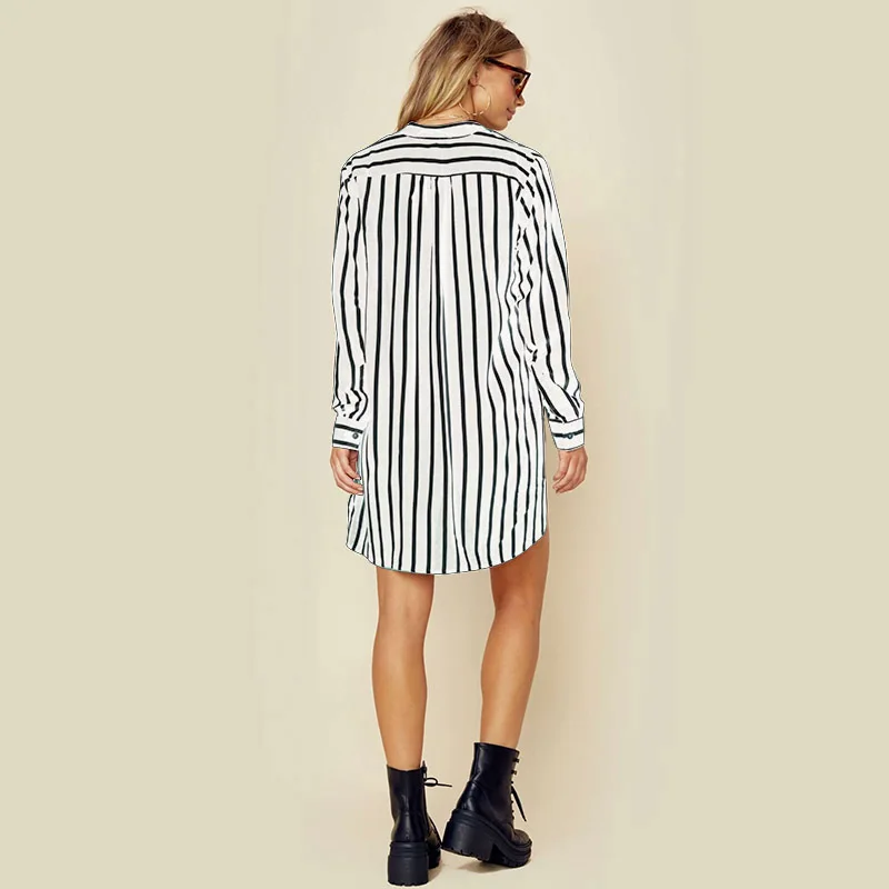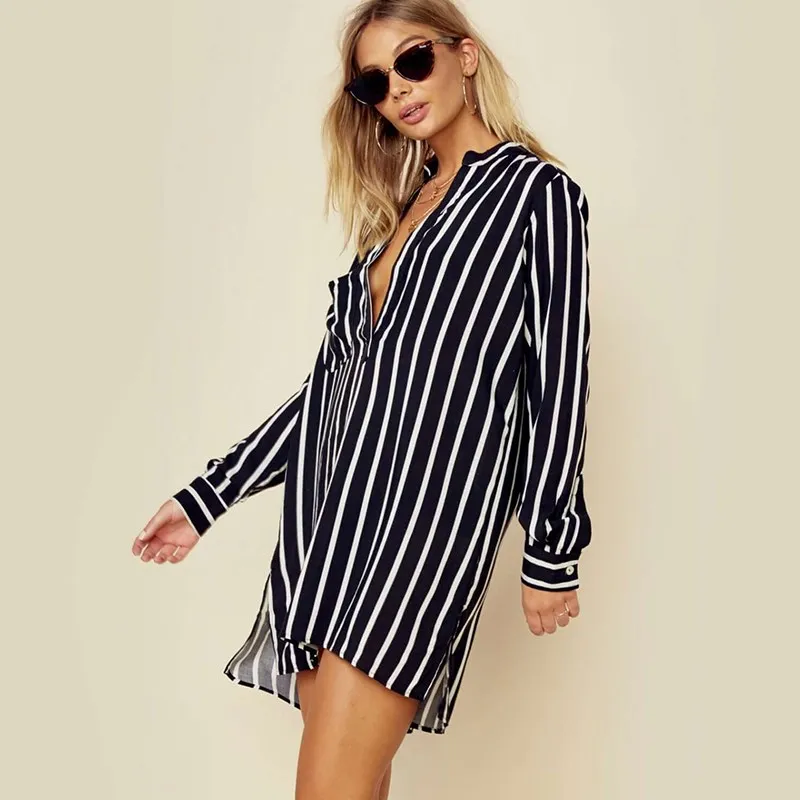 NEW ZANZEA 2018 Spring Long Sleeve Loose High Low Long Shirts Women Deep V Neck Work Ladies Baggy Striped Blouse Mini Vestido