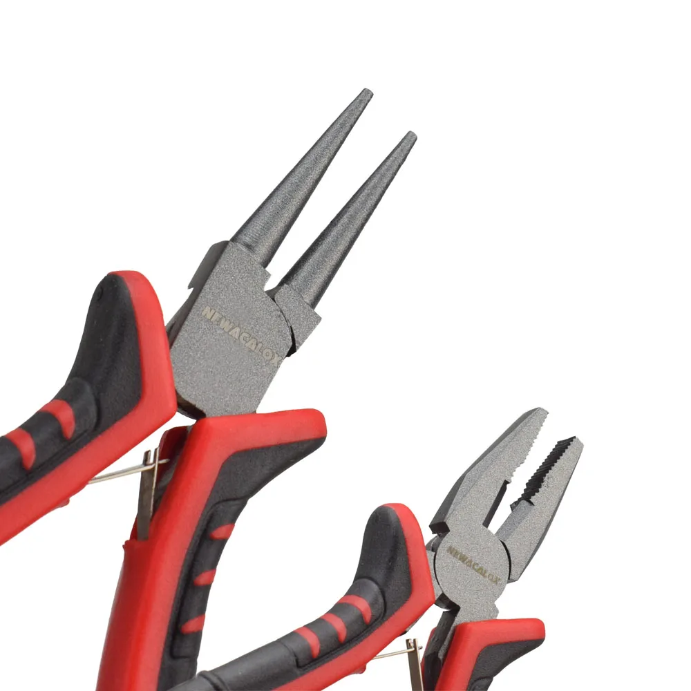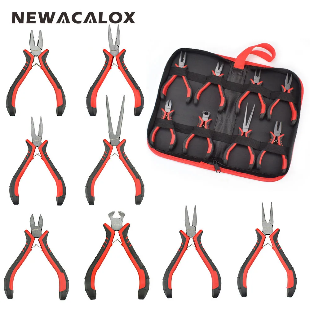 NEWACALOX 4.5″ Mini Pliers Set End Cutting Pliers Wire Cutter Diagonal Pliers Flat Nose Pliers 8-Style DIY Jewelry Making Tools