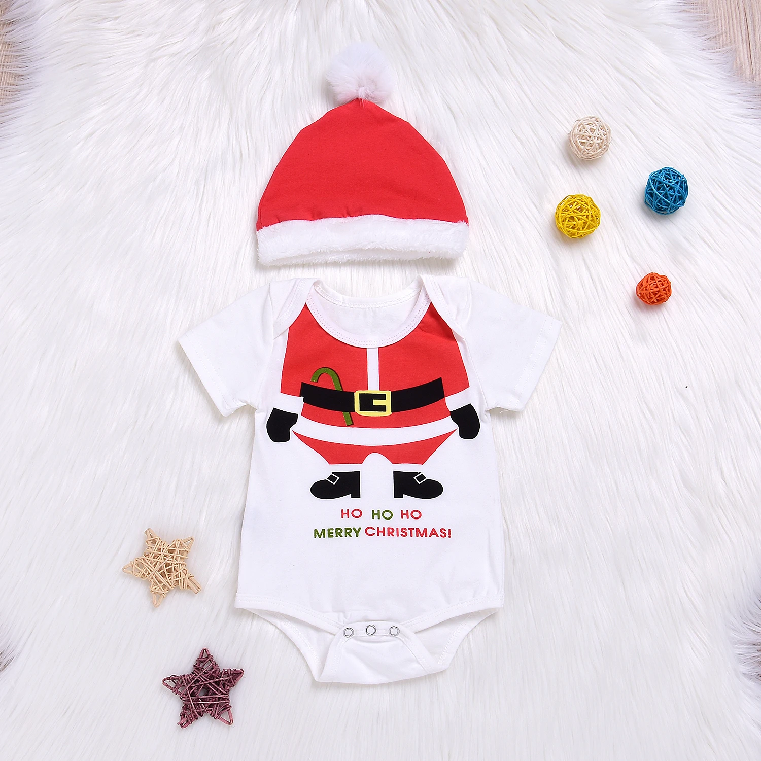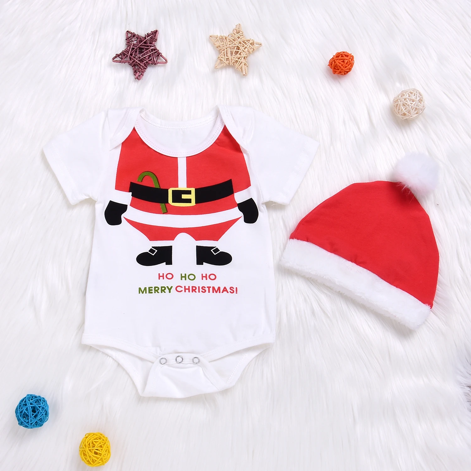 Newborn Baby Girl Boy Top Romper+Santa Hat Christmas 2pcs Outfits Set Cotton Cute Clothes 0-18M