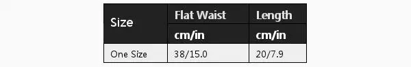 Size: One Size Flat Waist(cm/in): 38/15 Length(cm/in): 20/7.9