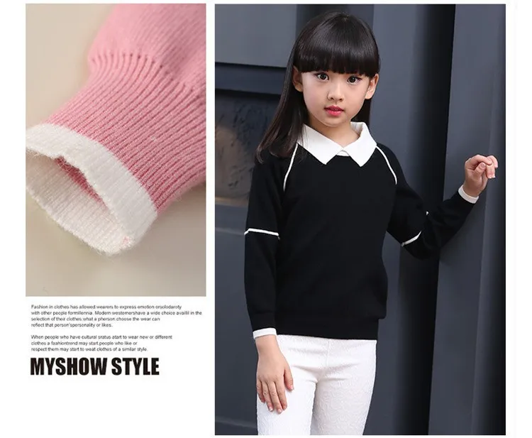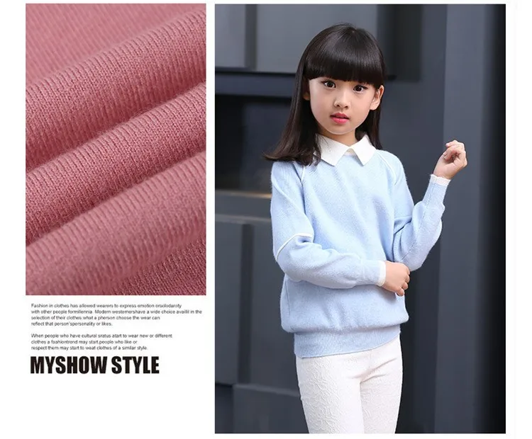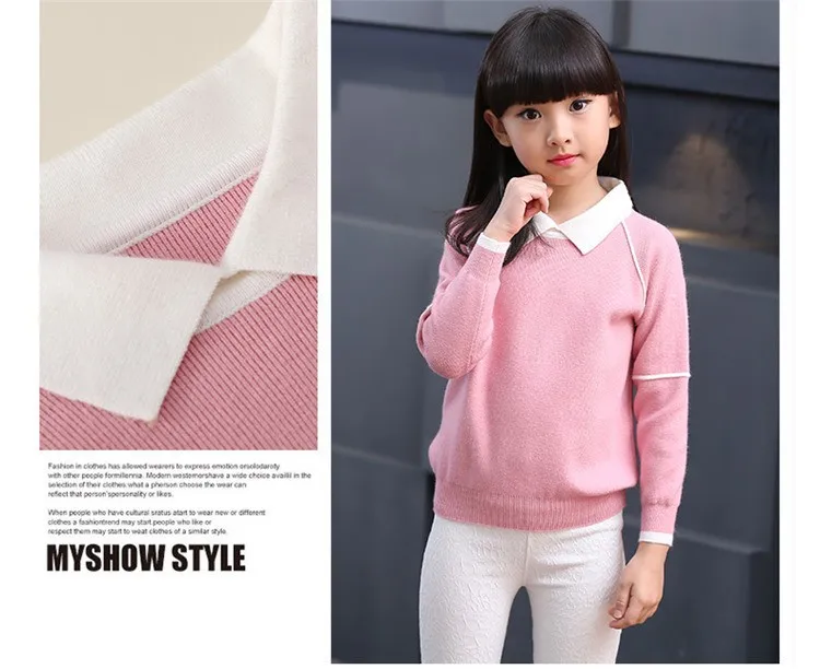Newborn child autumn clothes turndown solid pullover upset the whole sleeve knit coat girl sweater WER08