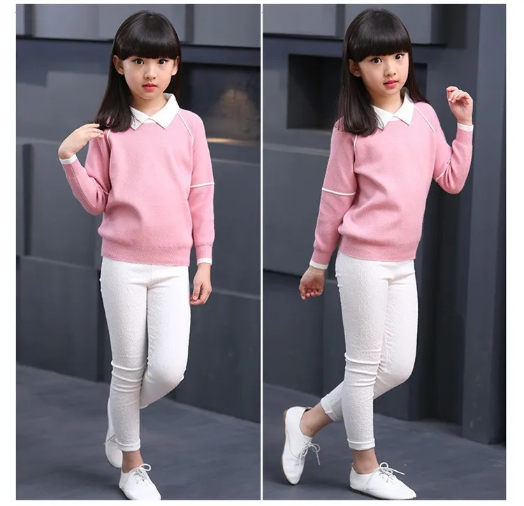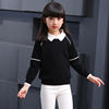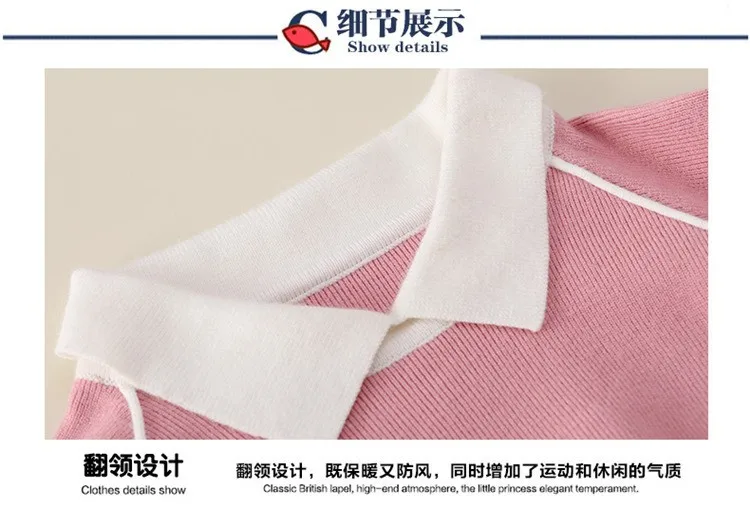Newborn child autumn clothes turndown solid pullover upset the whole sleeve knit coat girl sweater WER08