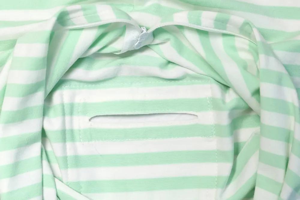 Dual zipper for easy diaper changes without taking them out of the swaddle and no bothersome snaps, noisy Velcro closures or loose fabric.