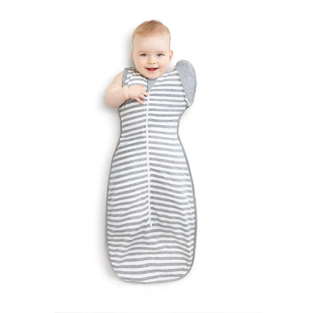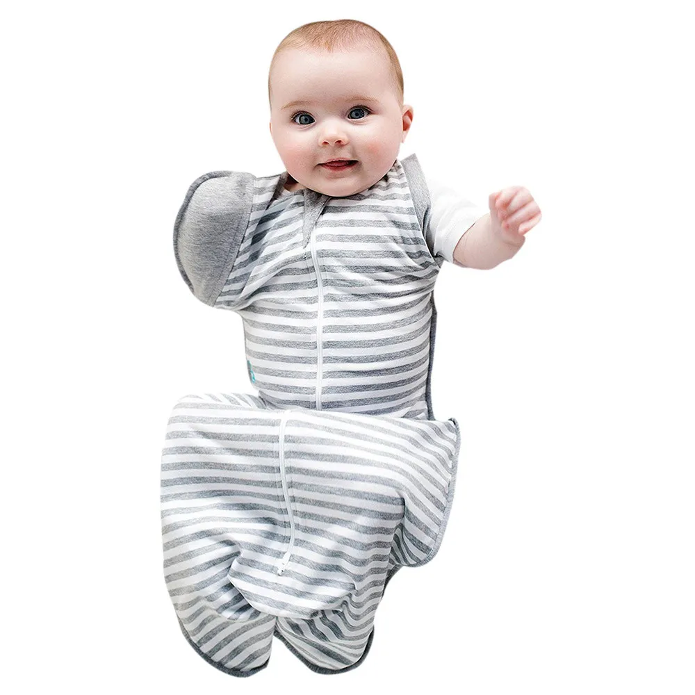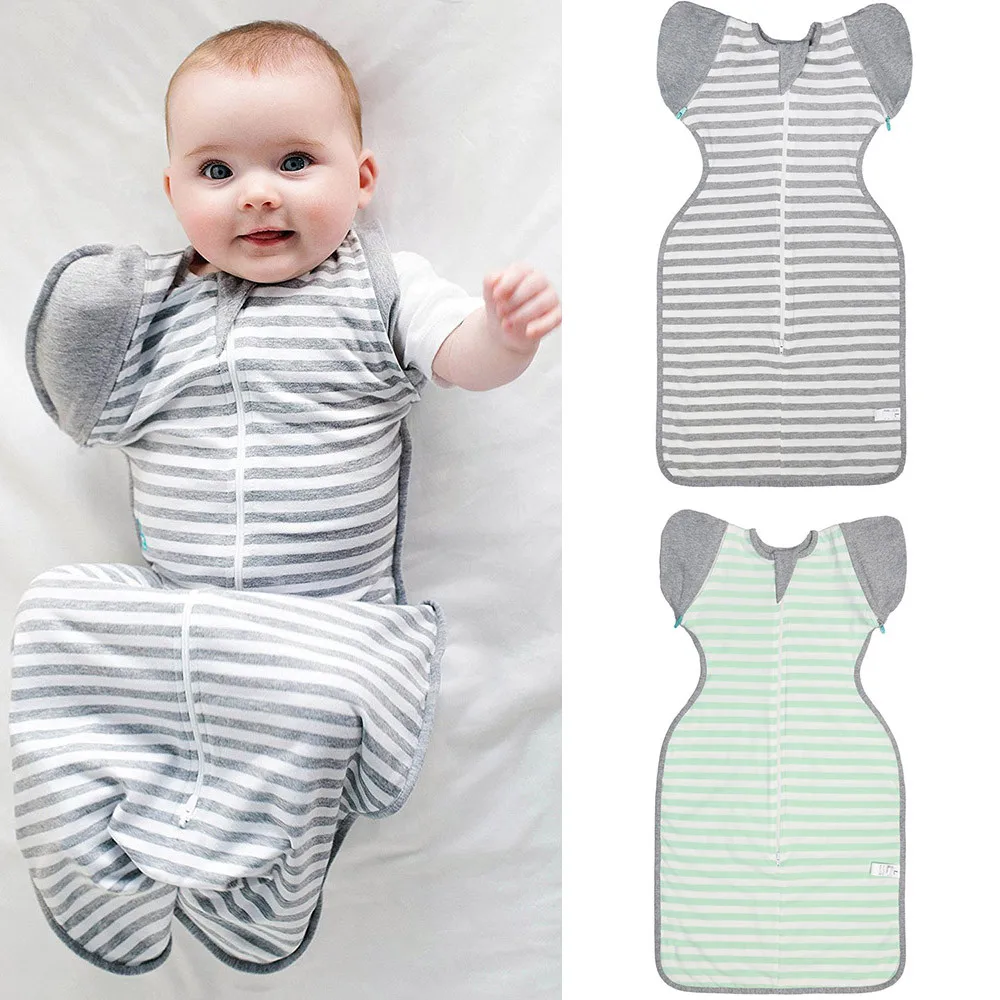 Newborn Infant Baby Striped Blanket Sleeping Wrap Zipper Swaddle