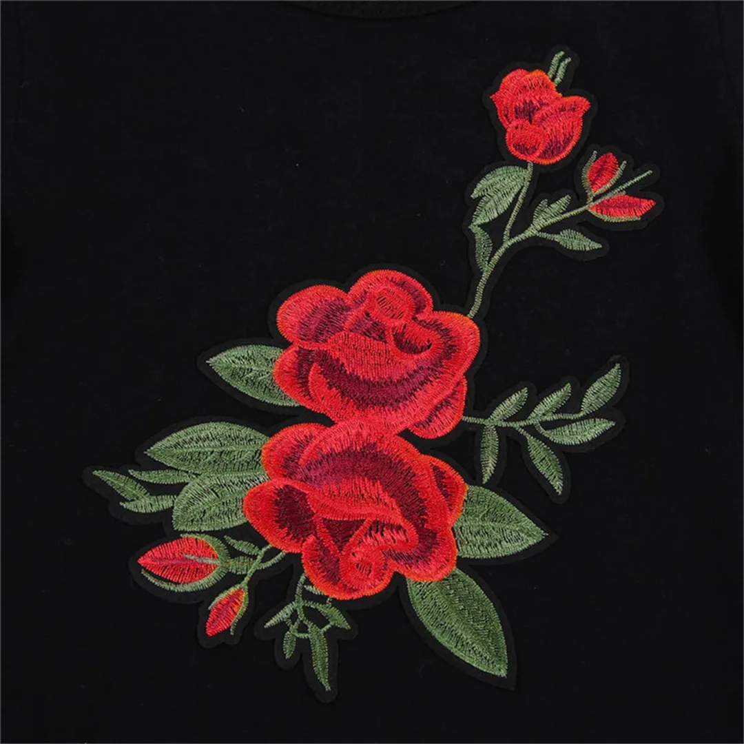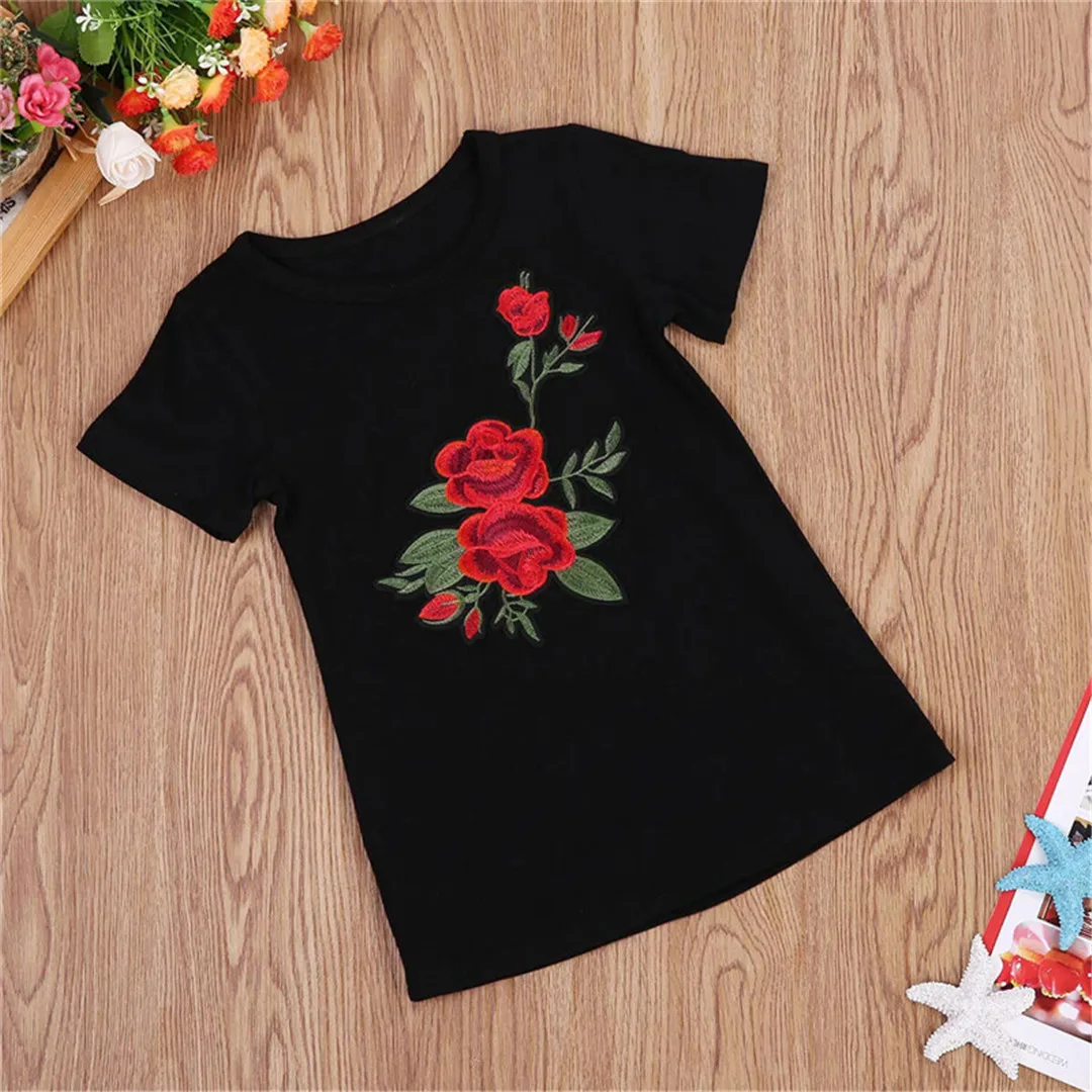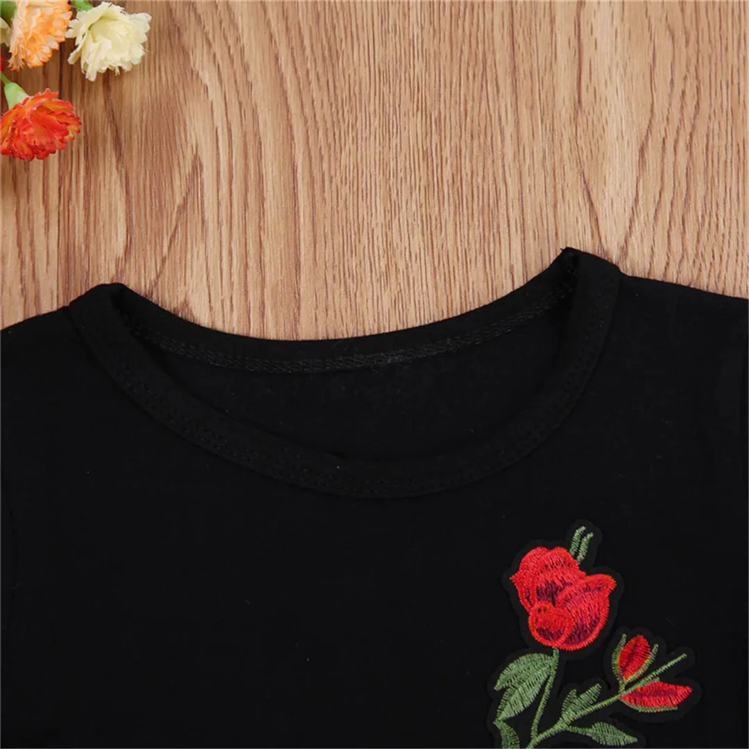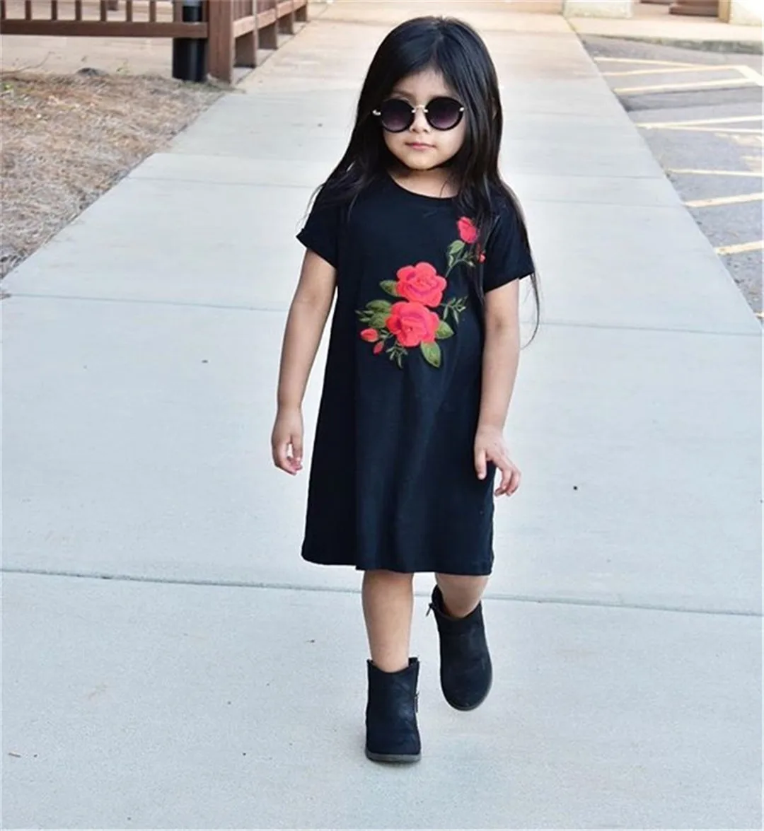 Newborn Kid Baby Girls 3D Roses Flower Printing Princess Party Dress Outfits Xmas Straight Dresses Sleeve Black