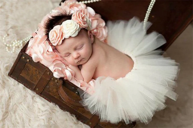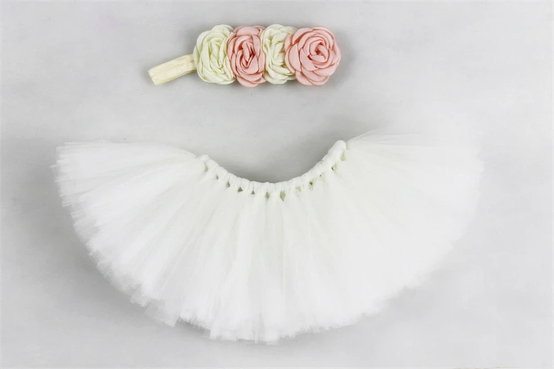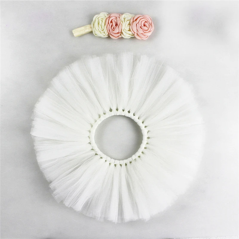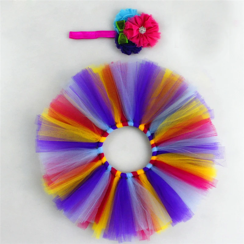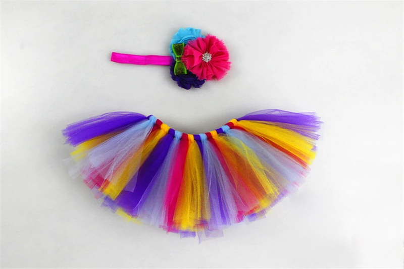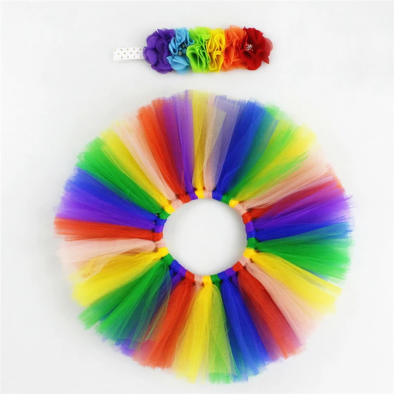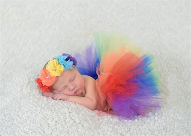 Newborn Photography Props Baby Infant Rainbow Princess Tutu Skirt and Flower Headband Bebe Girl Fluffy Tulle Skirt Accessories