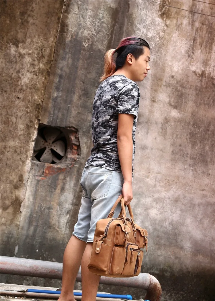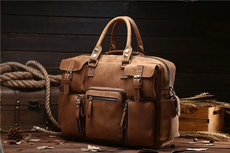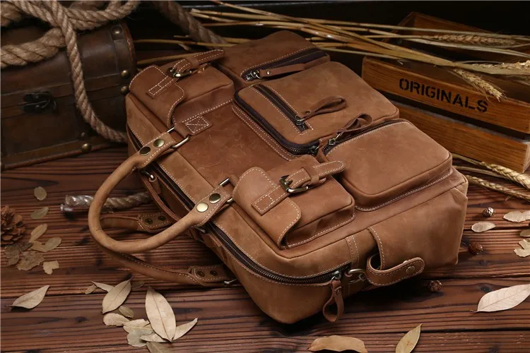 NEWEEKEND Man Bag Leather Briefcase Men Business Handbag Messenger Bags Male Vintage Men’s Shoulder Bag Large Capacity 3061