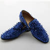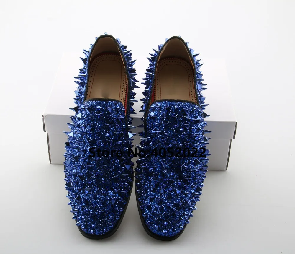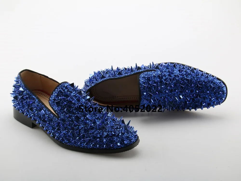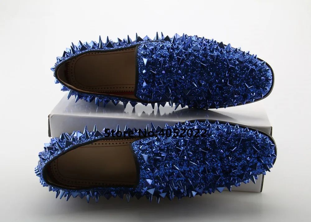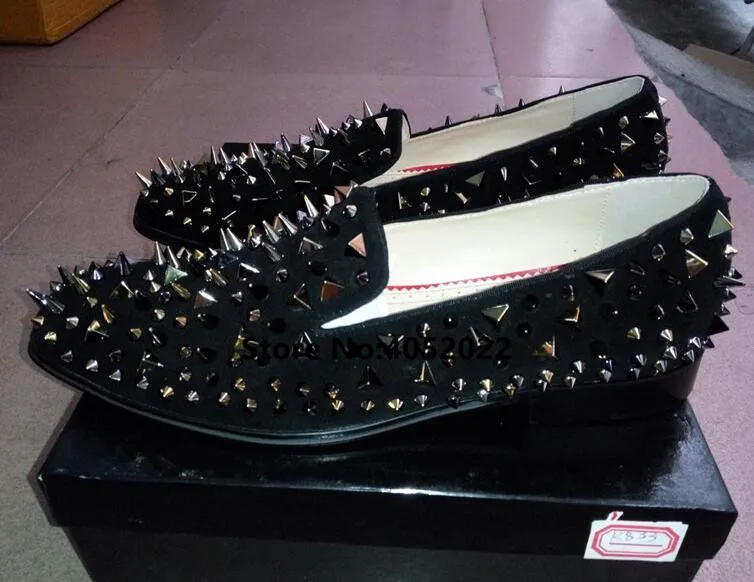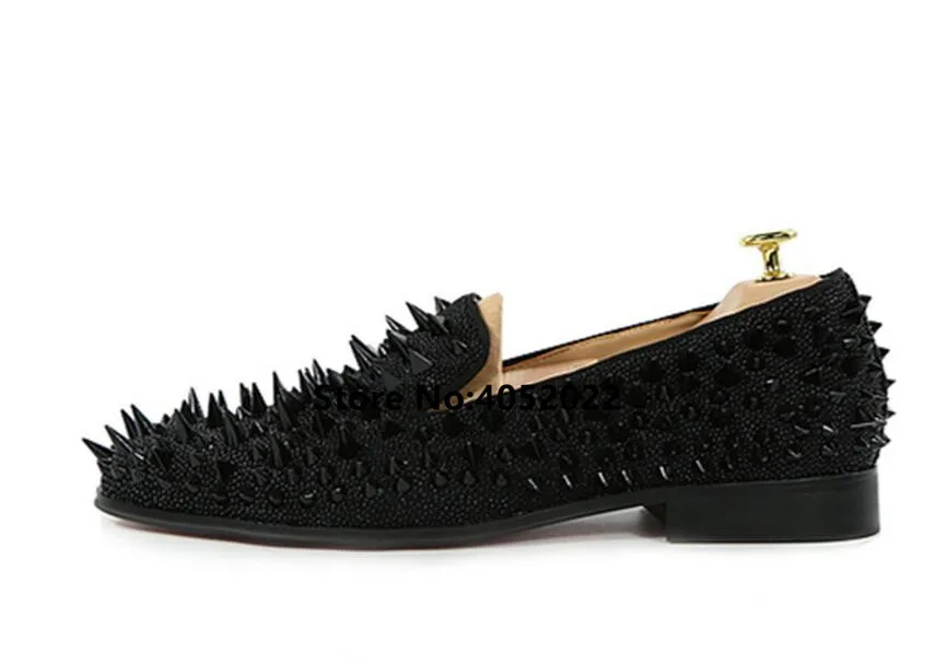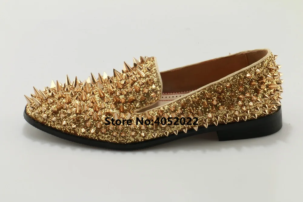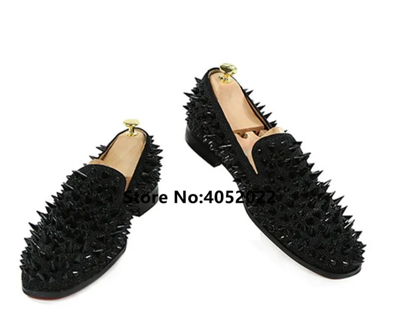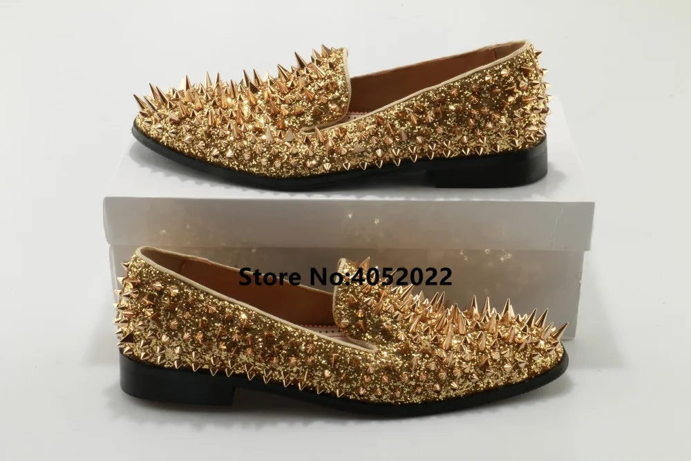 Newest Fashion Men Handmade Studs Spike Shoes Black Sliver Gold Glitter Loafers Shoes Runway Shining Rivets Party Wedding Shoes