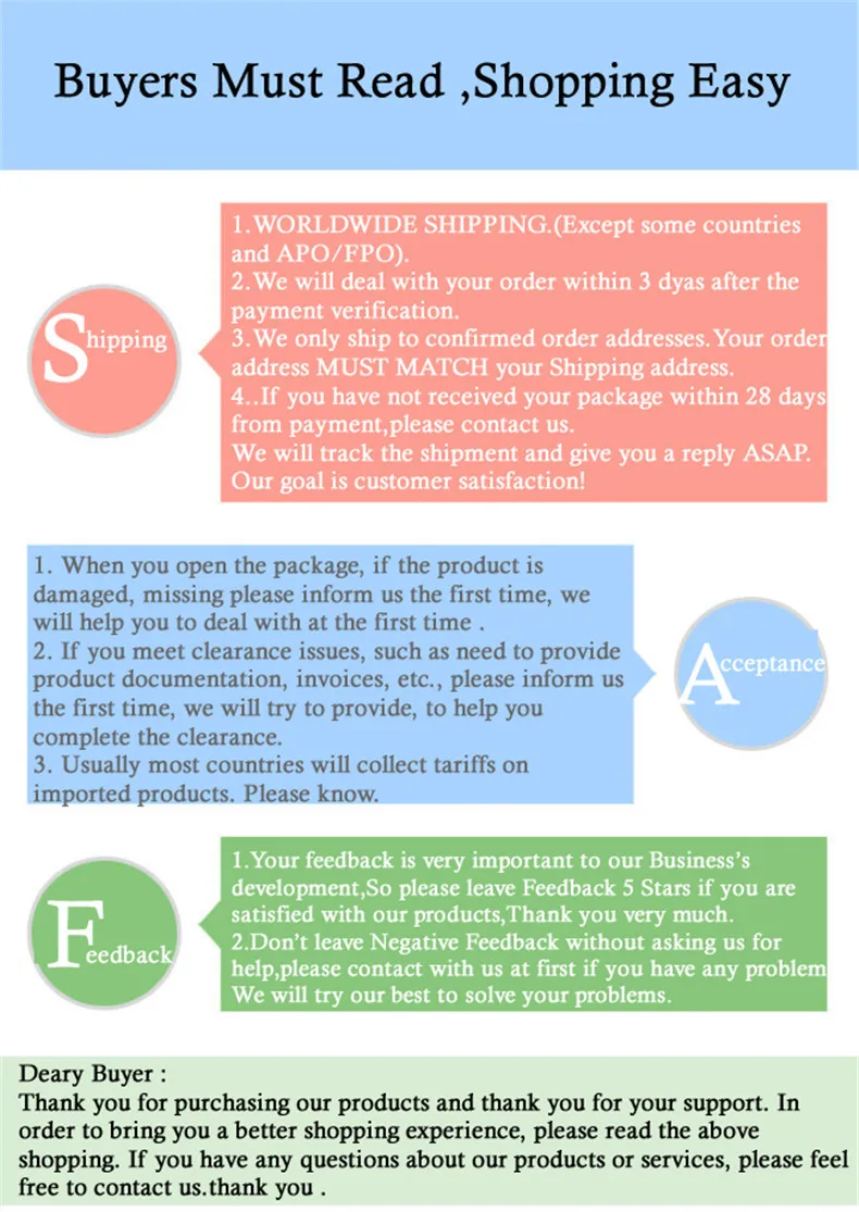 We are not responsible for any custom fees once the items have shipped. By purchasing our products, you consent that one or more packages may be shipped to you and may get custom fees when they arrive in your country.