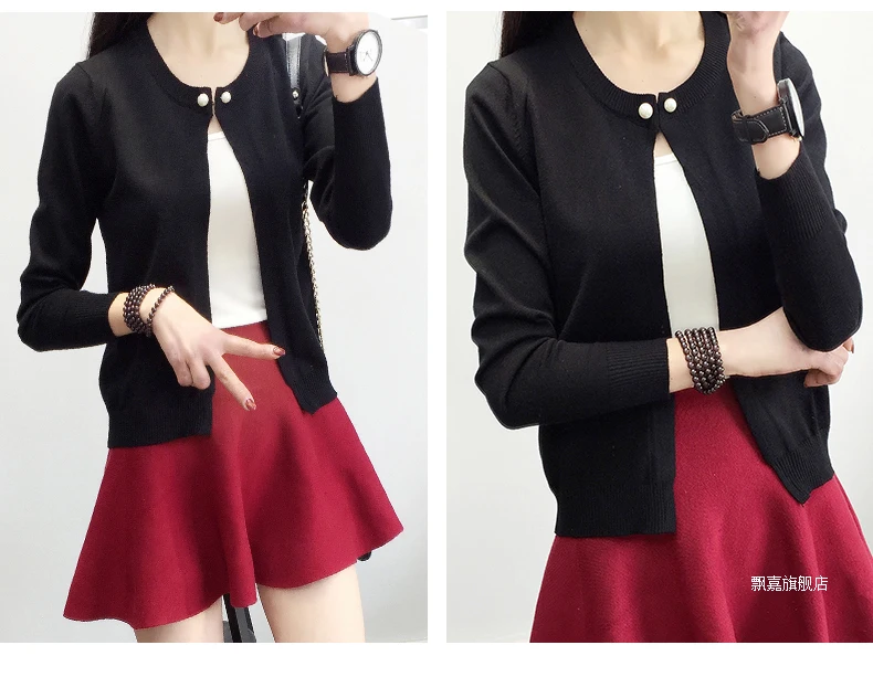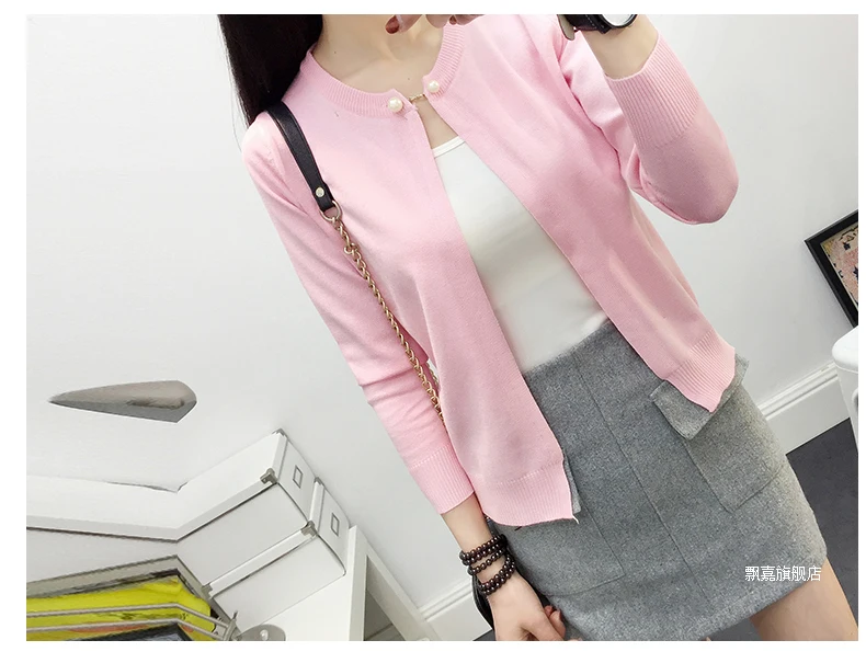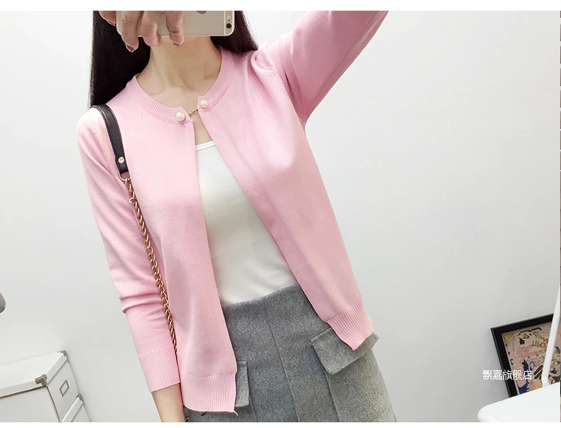 Newest Knitted Cardigan Women 2017 Spring Autumn Long Sleeve Women Sweater Cardigan Female Single Button Pull Femme Black/Pink