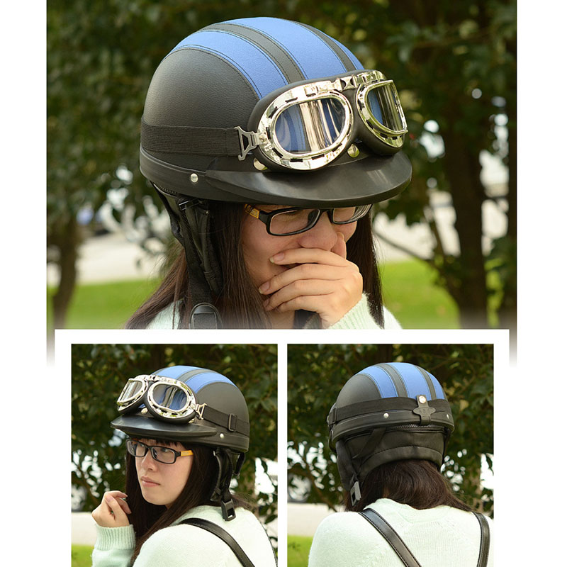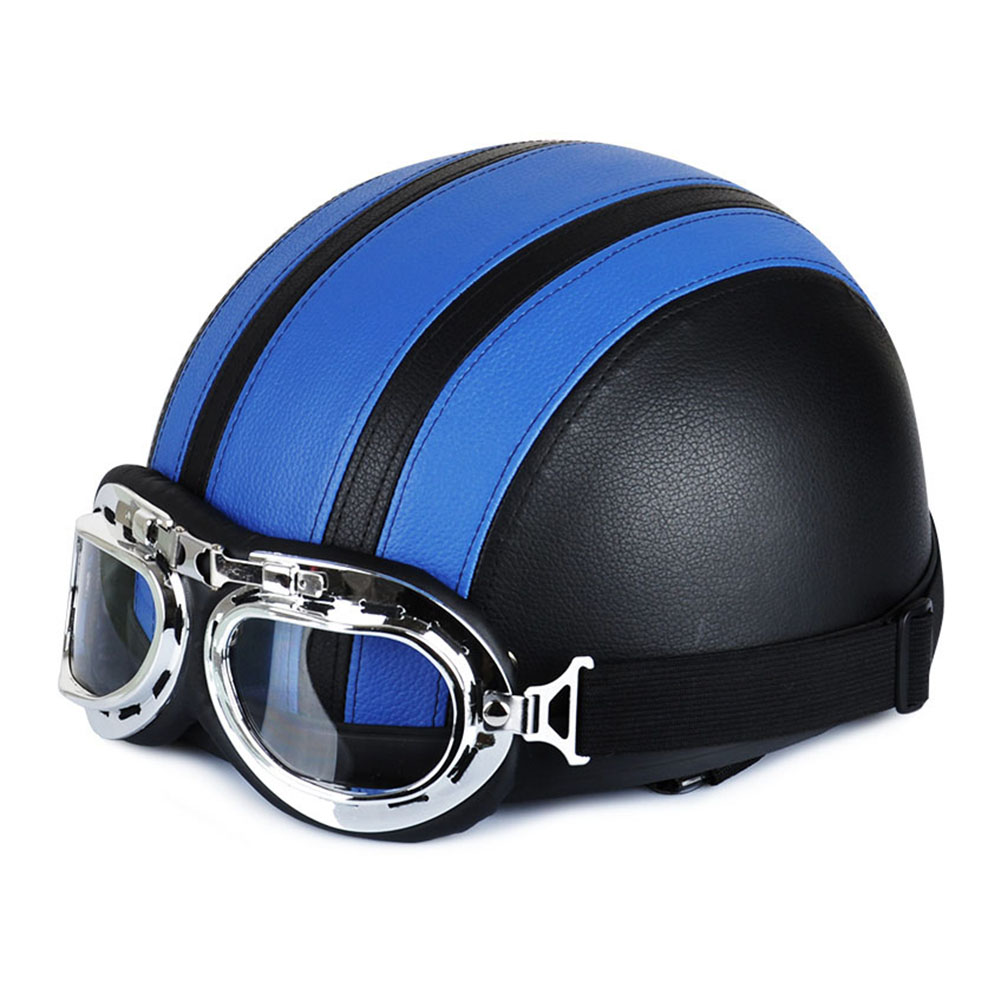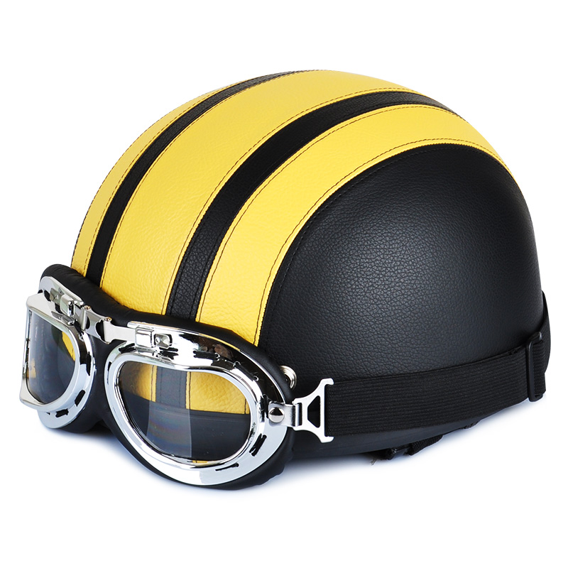 Newest Motorcycle Helmet With Shield Goggles Neck Scarf Street Bike PU Leather Half Helmets for Men Women CSL2018