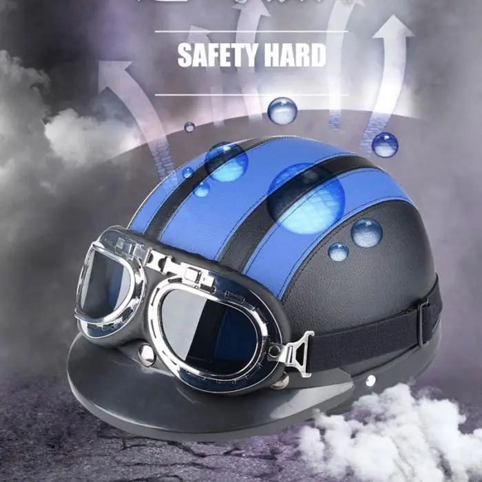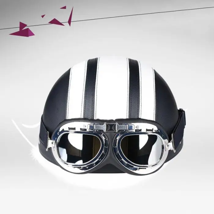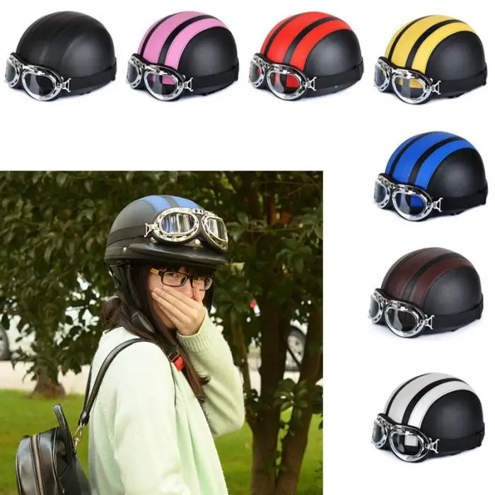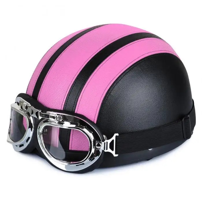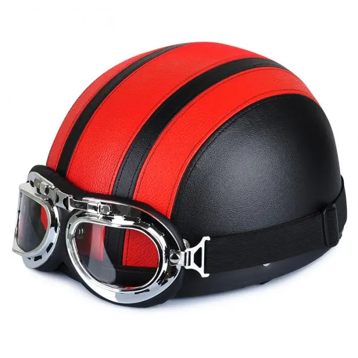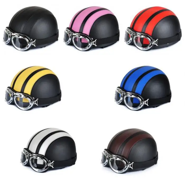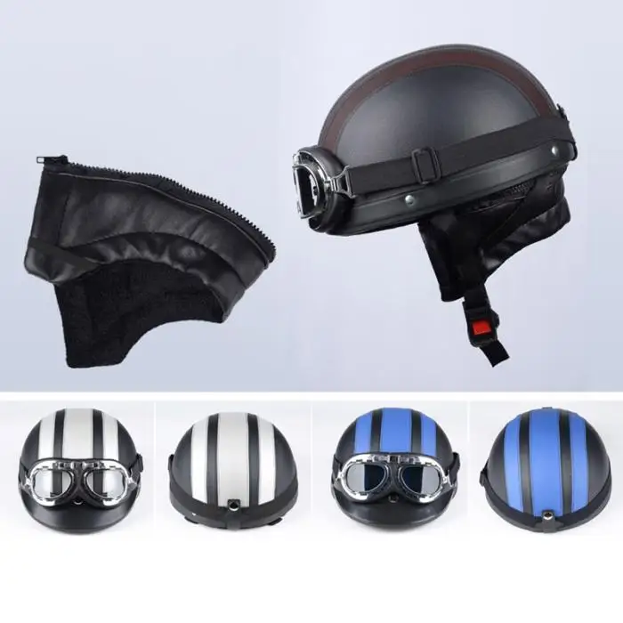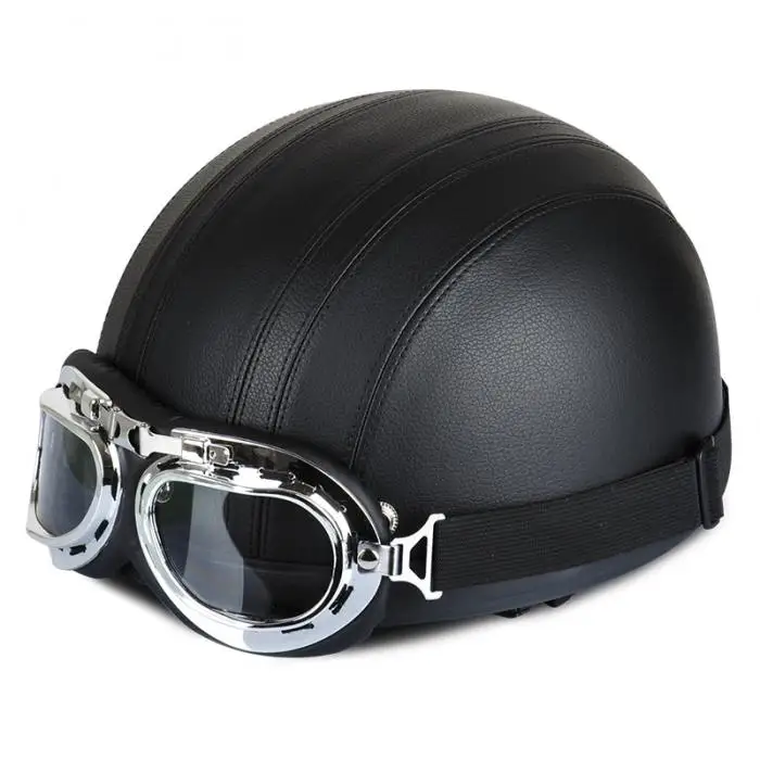 Newest Motorcycle Helmet With Shield Goggles Neck Scarf Street Bike PU Leather Half Helmets for Men Women CSL2018