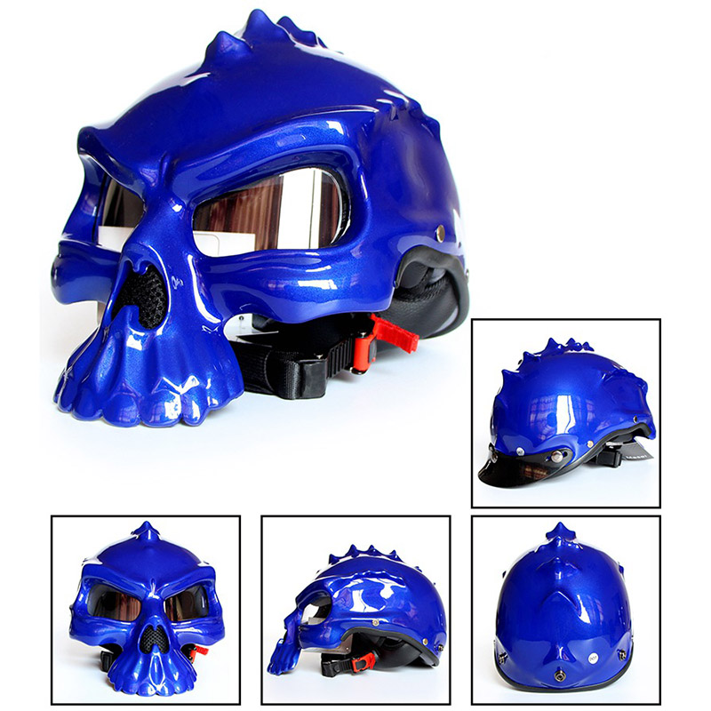 Newest Motorcycle Helmet With Shield Skull Shaped Street Bike Half Helmets for Men Women CSL2018