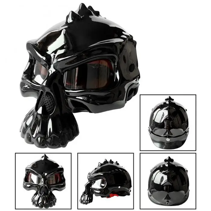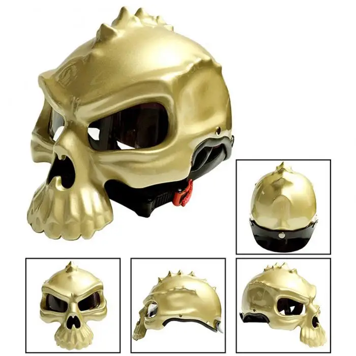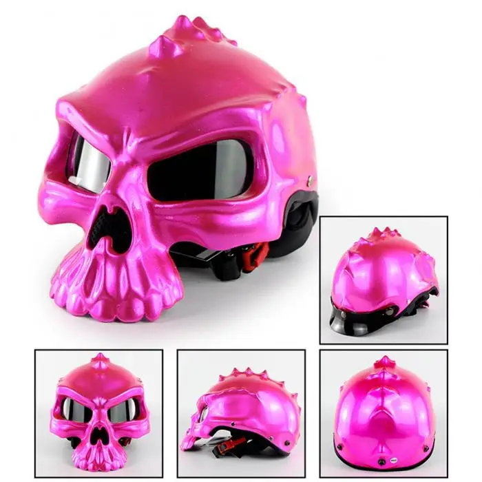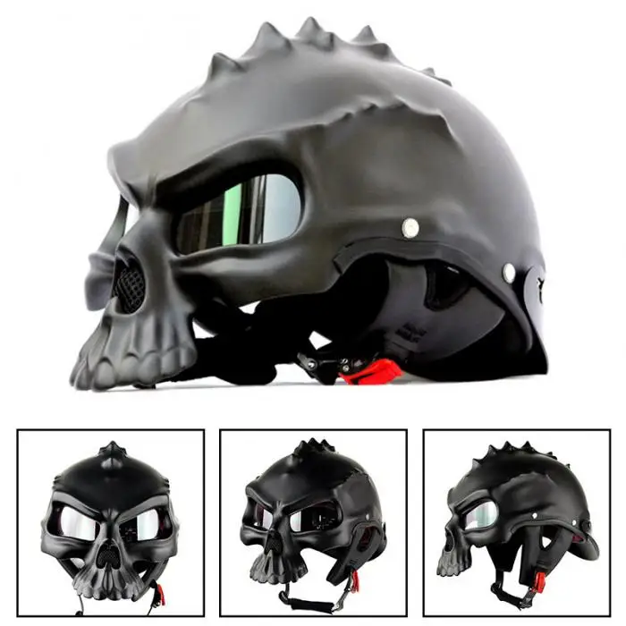 Newest Motorcycle Helmet With Shield Skull Shaped Street Bike Half Helmets for Men Women CSL2018
