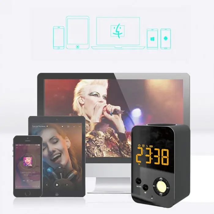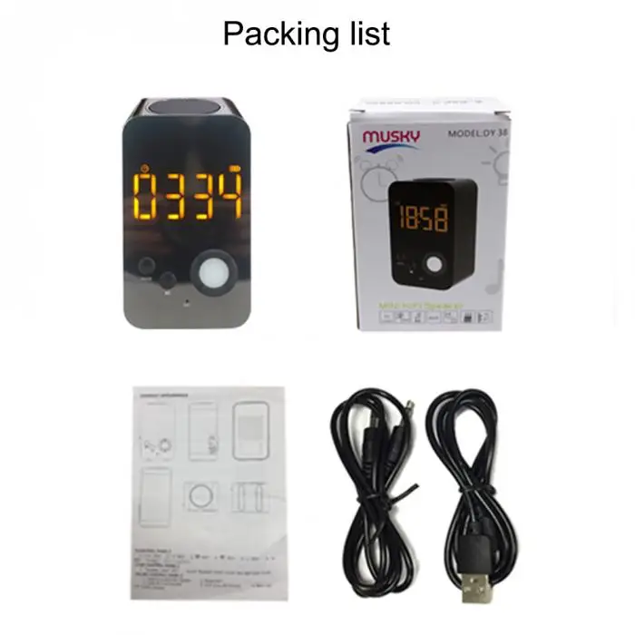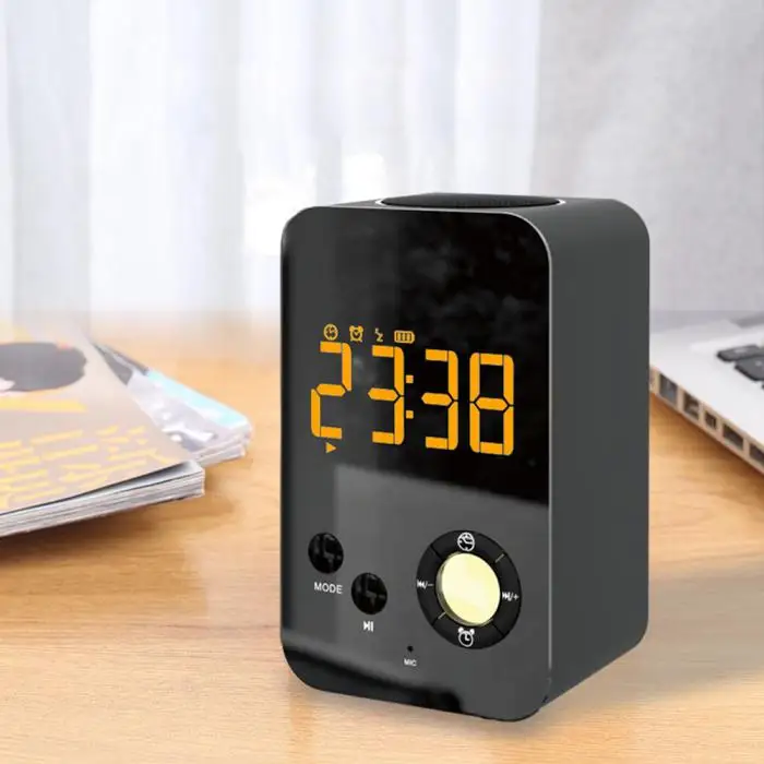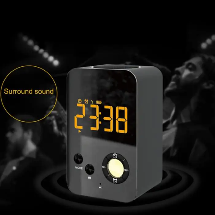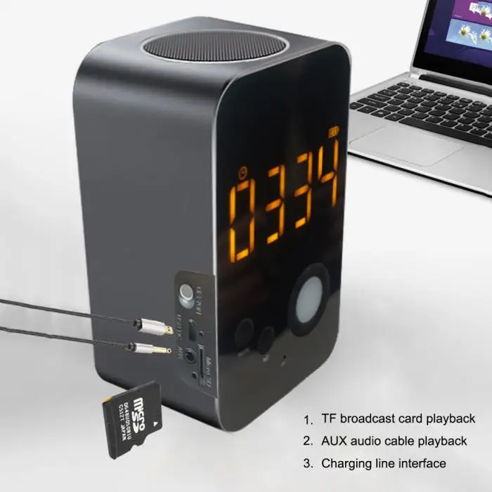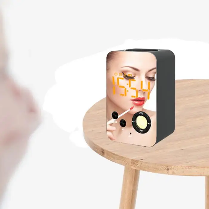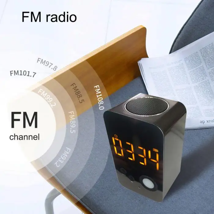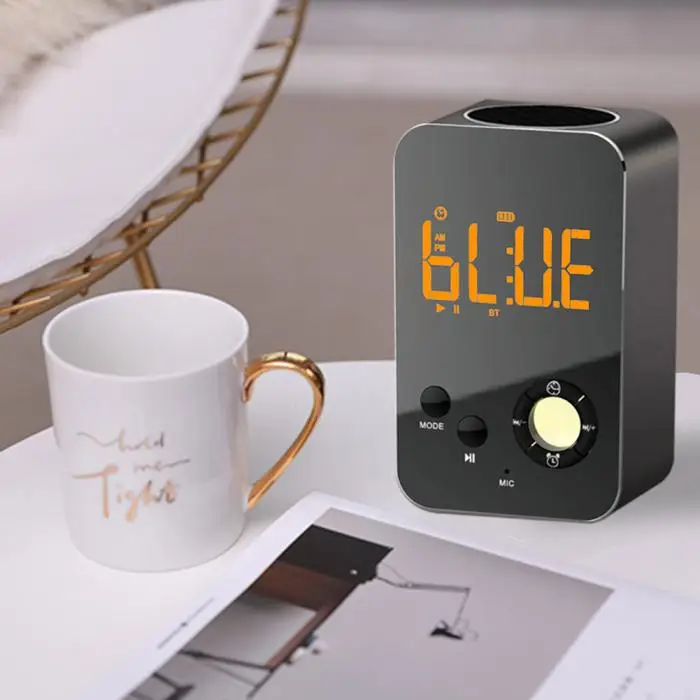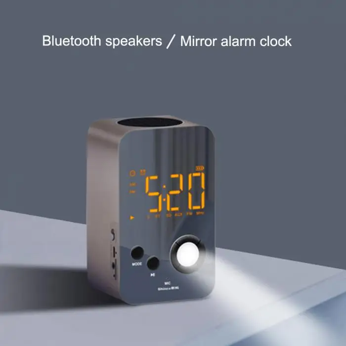 Newly Speaker Alarm Clock Wireless Bluetooth Mirror Portable Mini Bass Digital USB FM Radio