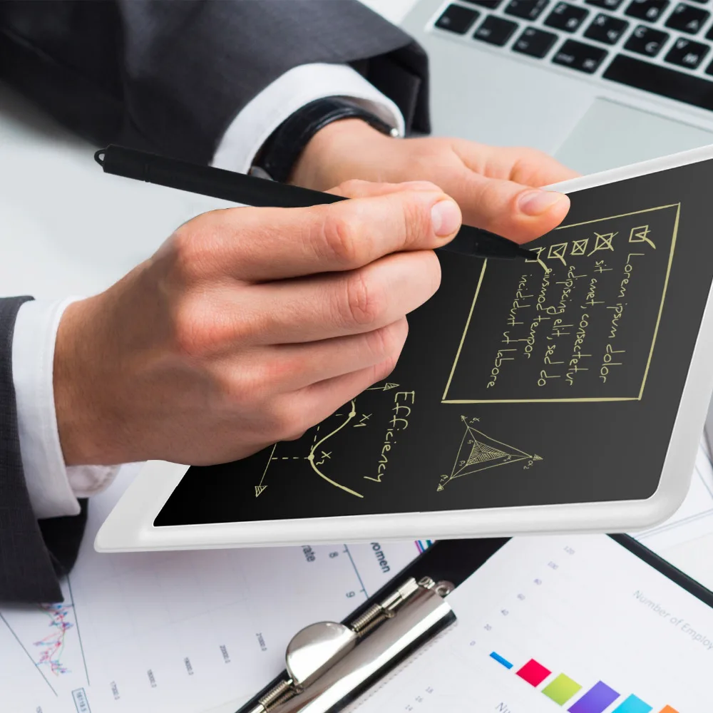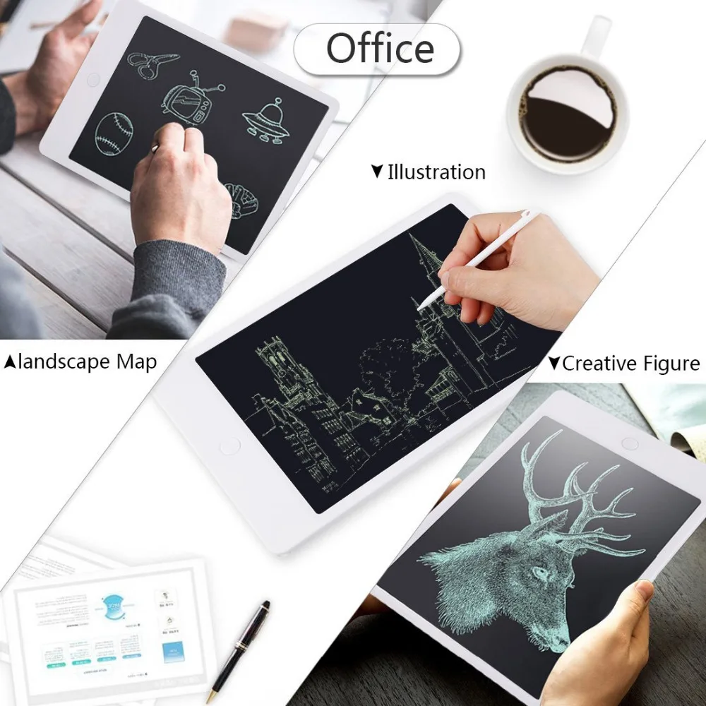 Pressure-sensitive LCD writing surface makes your writing or drawing appear without any delay.