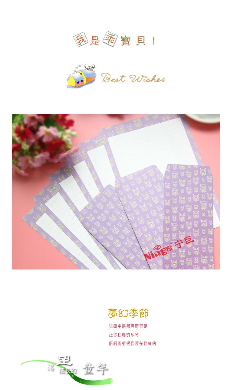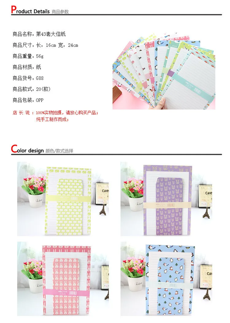 NJ-001-53 Wholesale Big size Writing Letters 6pc+Envelops 3pc 9pcs Set Fashion School Office Cartoon Students Envelope+Letters