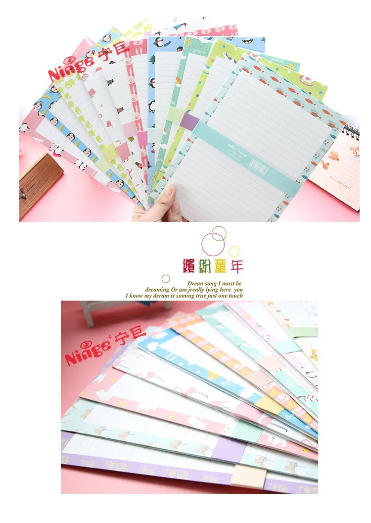 NJ-001-53 Wholesale Big size Writing Letters 6pc+Envelops 3pc 9pcs Set Fashion School Office Cartoon Students Envelope+Letters
