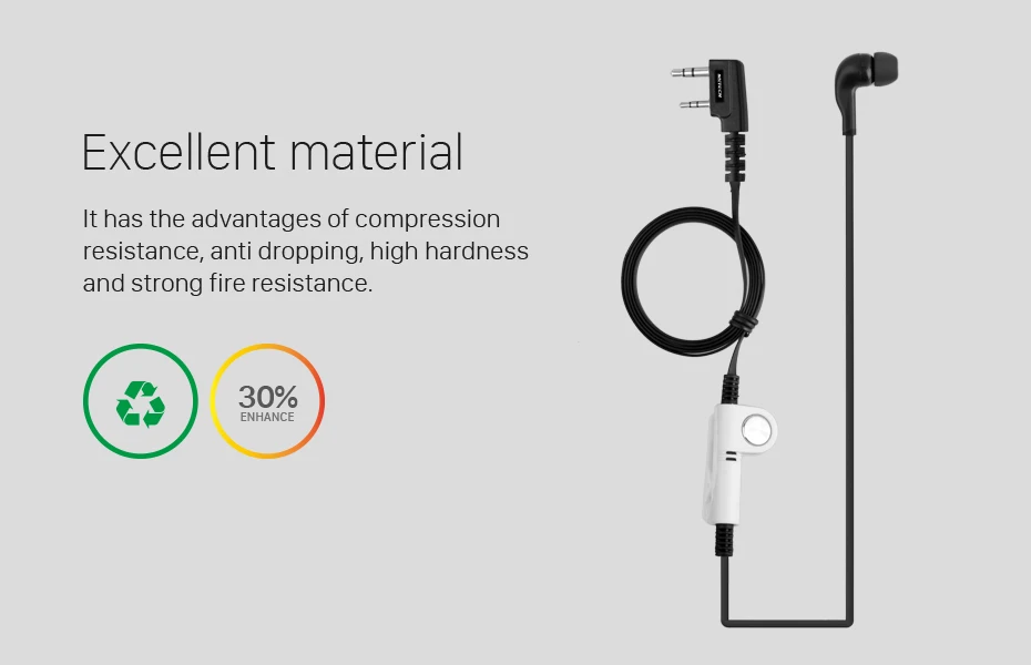 High sensitivity microphone, transparent conduit concealed. High elastic PU green wire, strong and durable. PTT switch durable. Has a noise canceling feature, even if the signal is not affected.