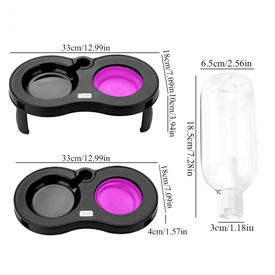 This portable dog feeding bowl is perfect for outdoor and travel use. It features foldable design, easy to store and carry. It has double bowls, great for both food and water. 500ml water bottle offers auto water refill, which will meet the demand of drinking for a long time, safe and hygienic.