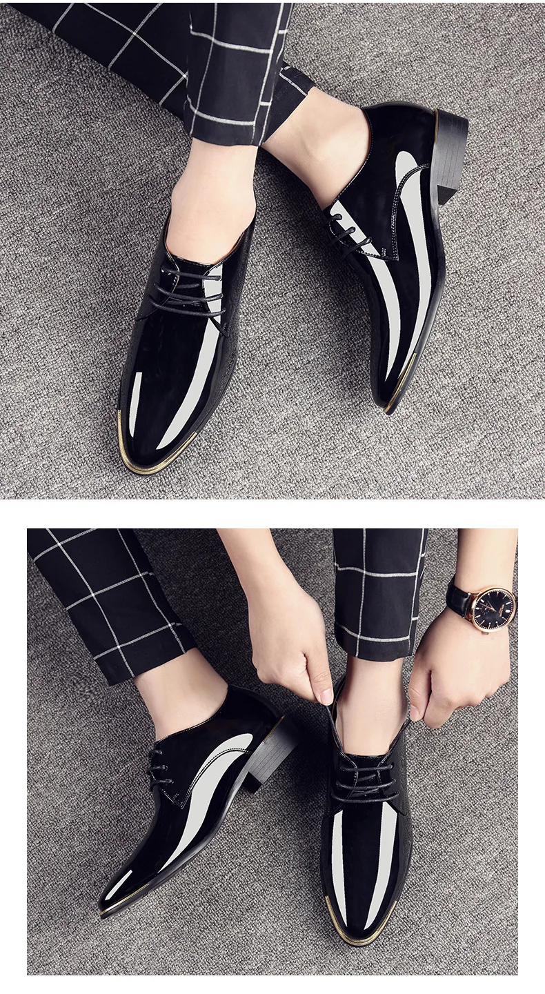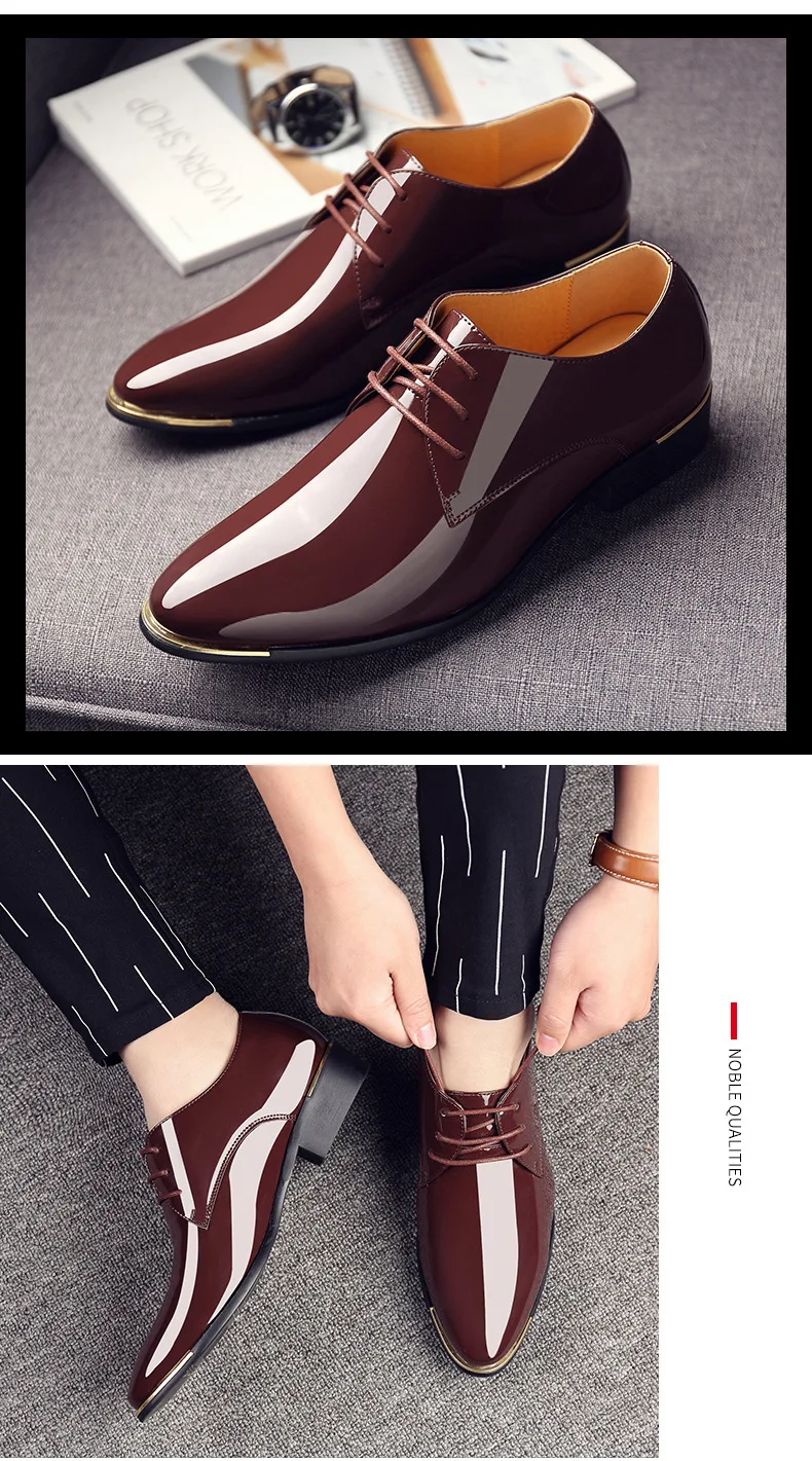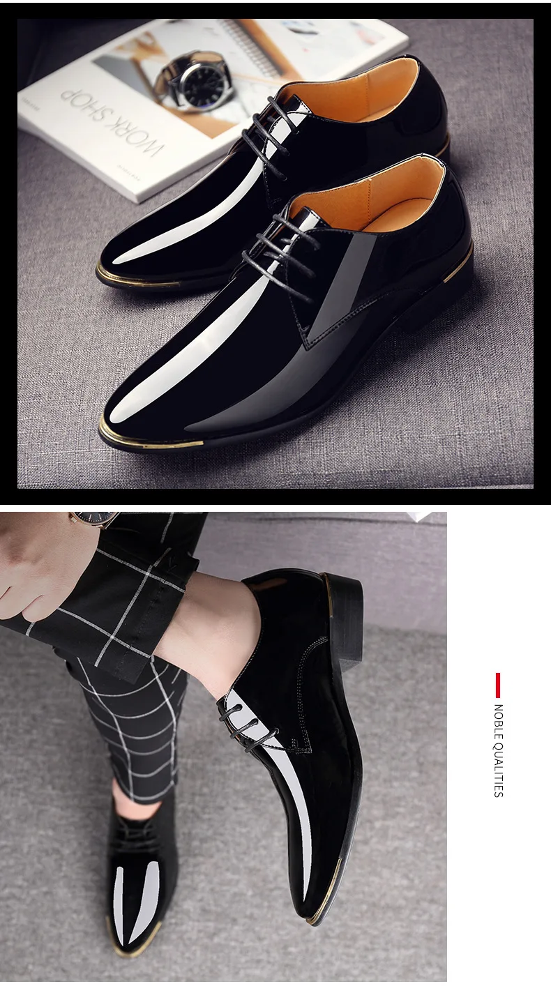 NPEZKGC 2018 Newly Men’s Quality Patent Leather Shoes Zapatos de hombre Size 38-47 Black Leather Soft Man Dress Shoes