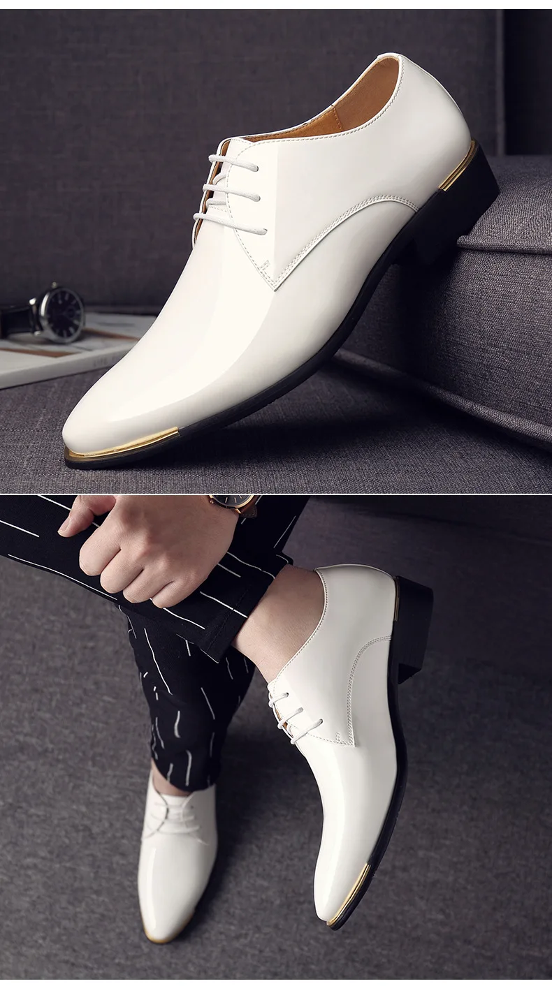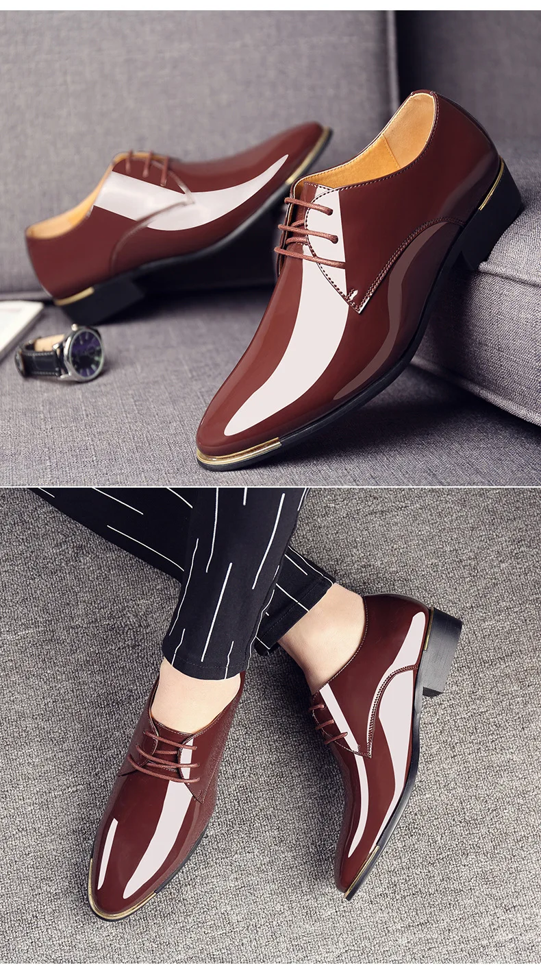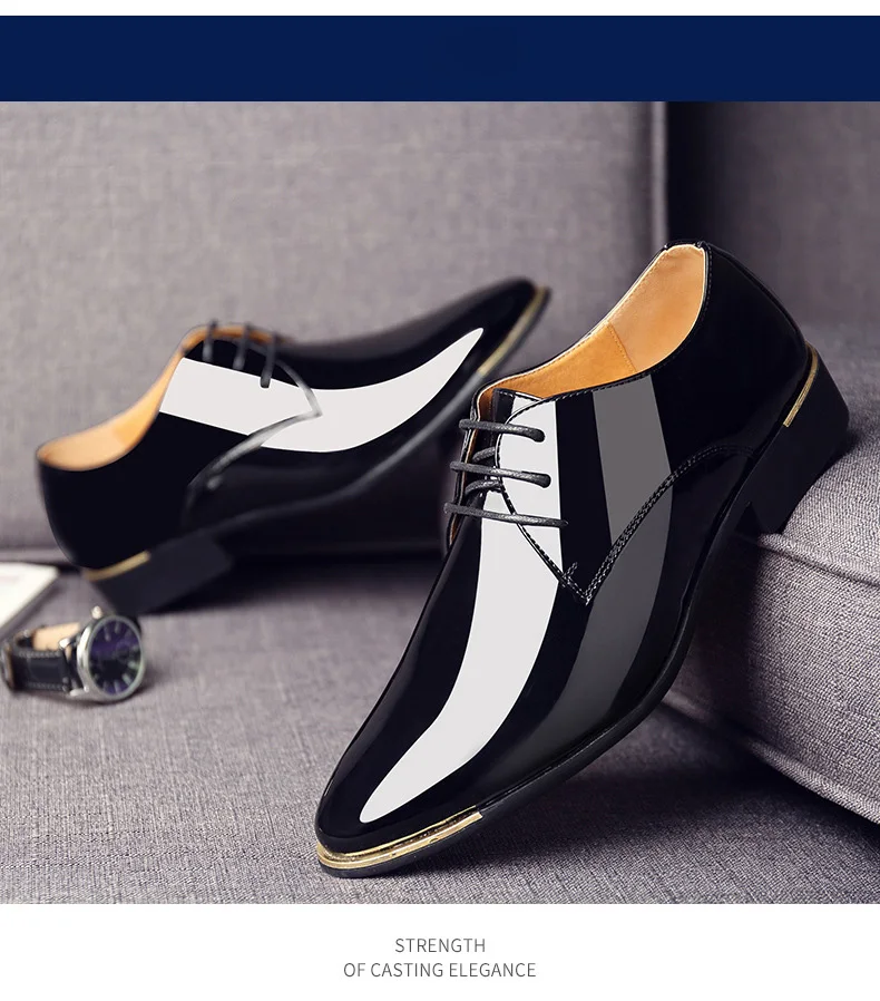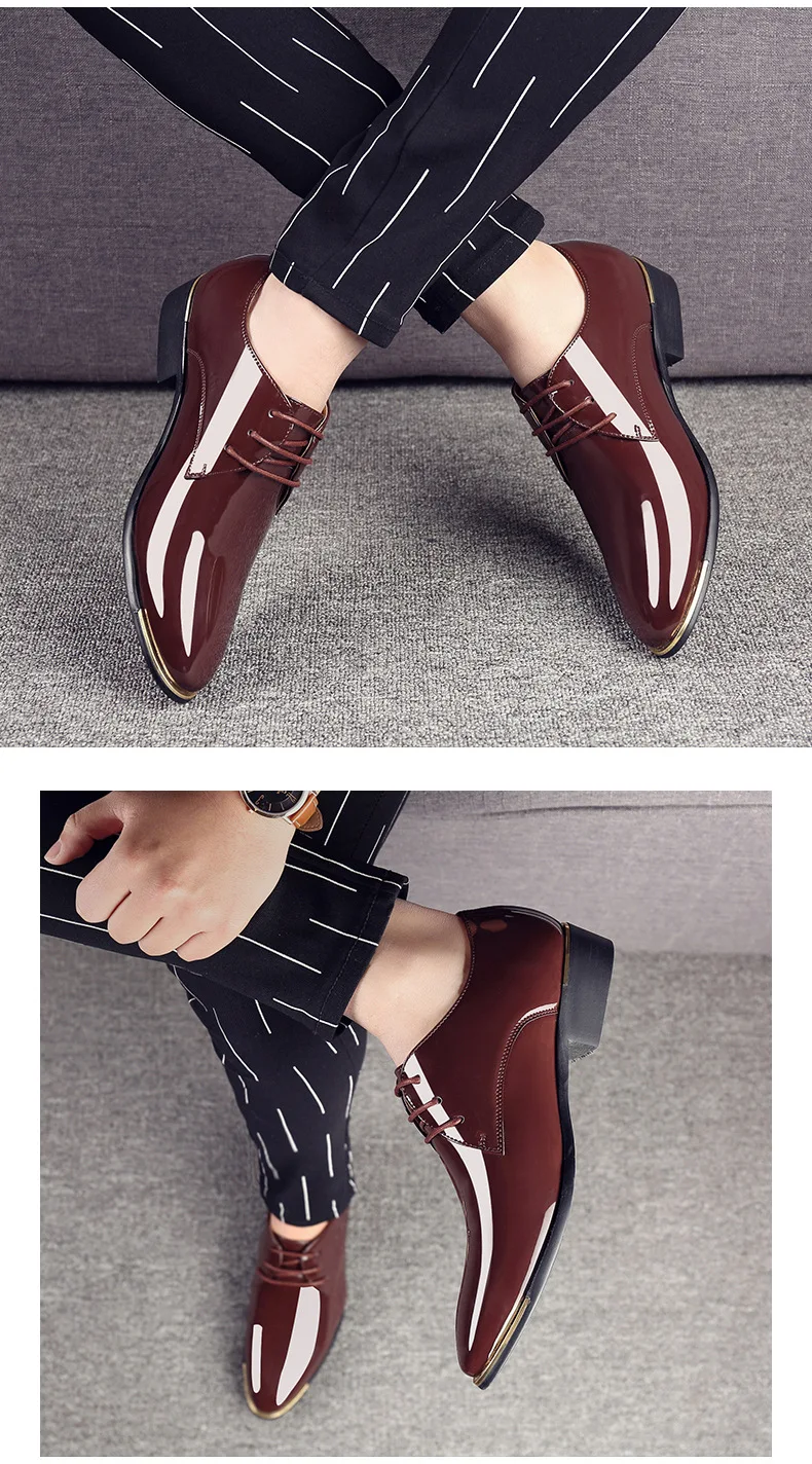 NPEZKGC 2018 Newly Men’s Quality Patent Leather Shoes Zapatos de hombre Size 38-47 Black Leather Soft Man Dress Shoes
