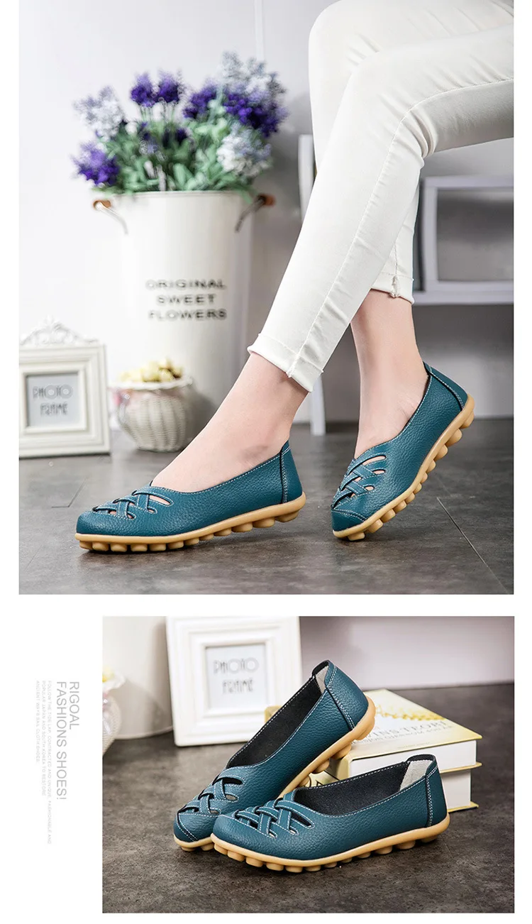 NPEZKGC Spring summer New Fashion Leather Woman Flats Moccasins Comfortable Women Shoes Cut-outs Leisure Flat Woman Casual Shoes