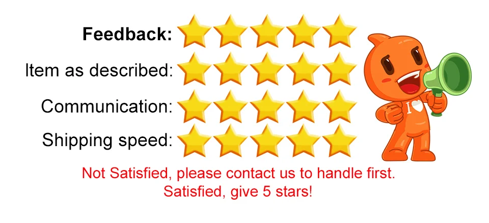 4.Please send a message to us before leaving the negative feedback or opening a dispute on site.Communication is the best way to solve the problems.