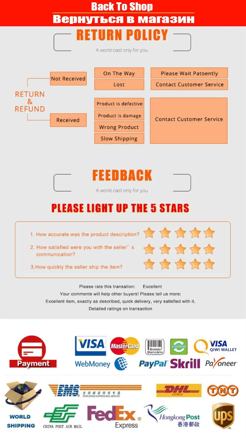 3: Please contact us if you are not satisfied with the item after receive it, We will give you a satisfactory solution before leave Neutral or Negative Feedback.