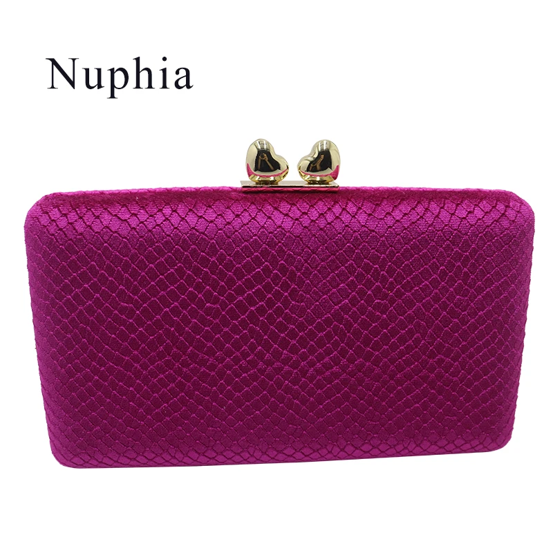 Nuphia Quality Velvet Evening Clutch Bags and Hard Case Box Clutch Evening Bags and Wallet Handbags for Women Purple Fuschia
