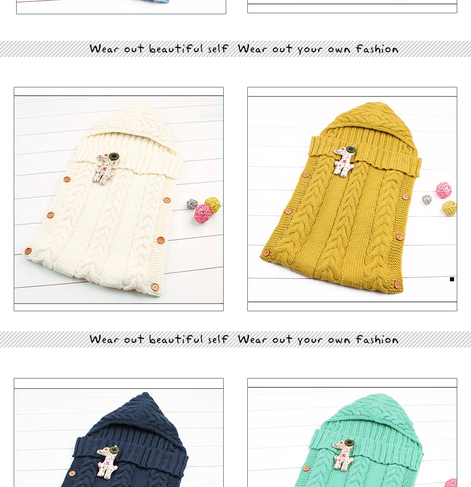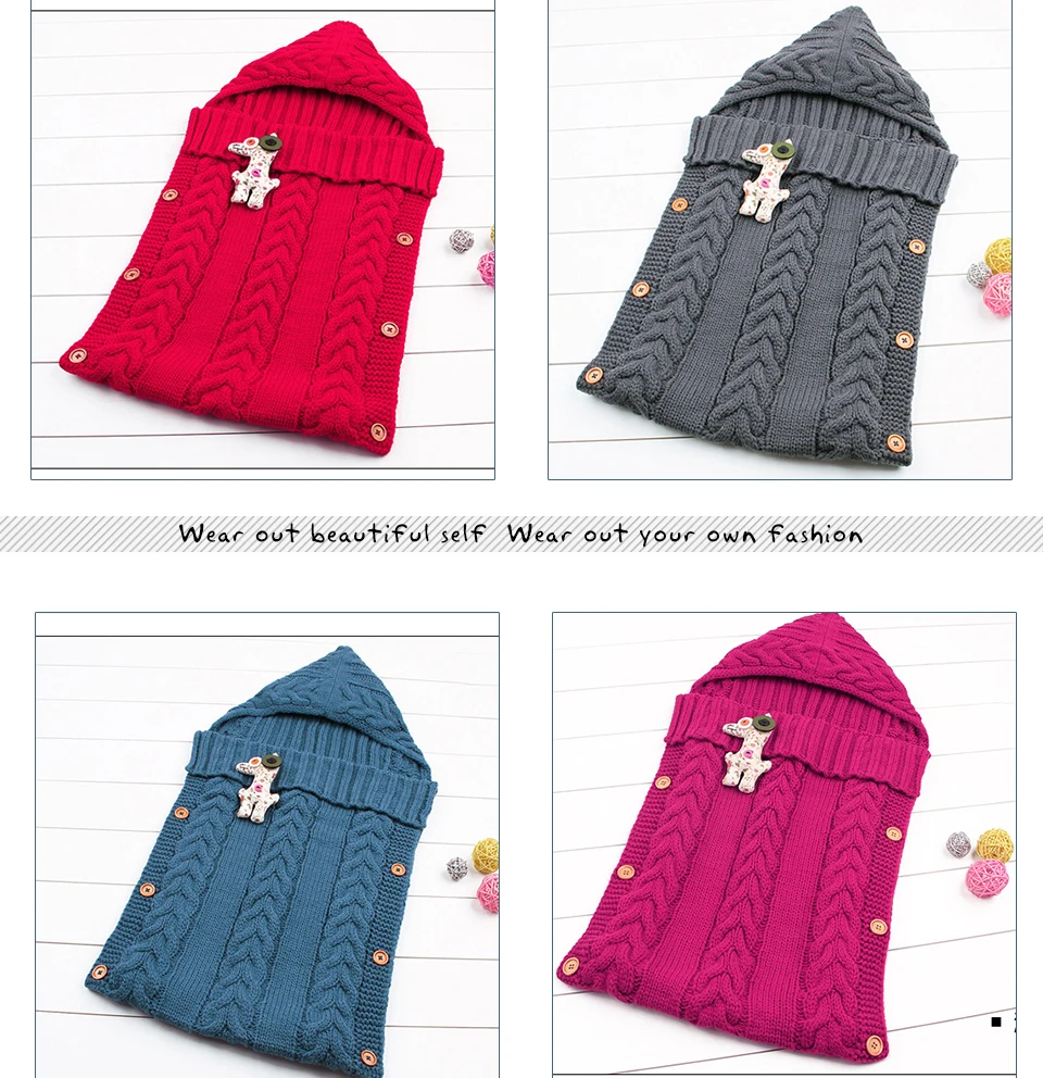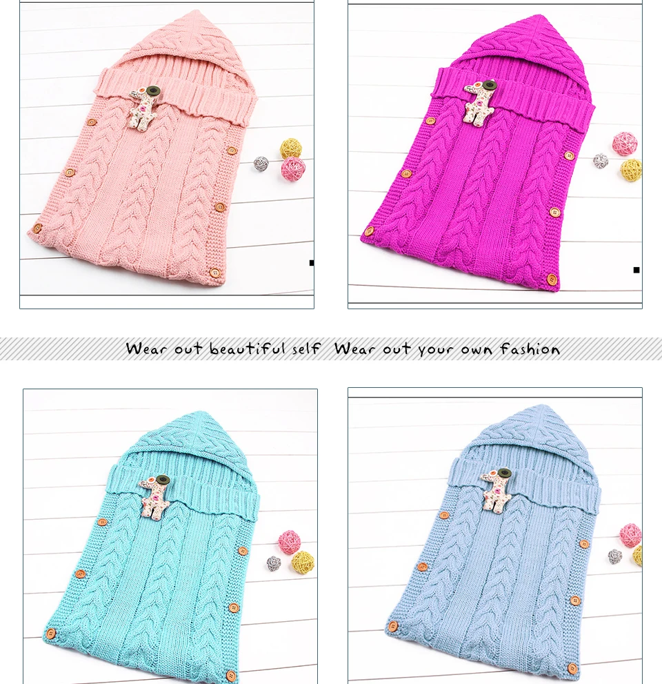 NWAD winter newborn baby sleeping bag Knitted baby sleep sack with hooded infant baby stroller sleeping bag Button open FF444