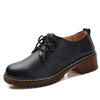 O16U Classic oxfords flats shoes women round toe rubber squared heel moccains shoes black Leather Lace up creepers shoes Spring