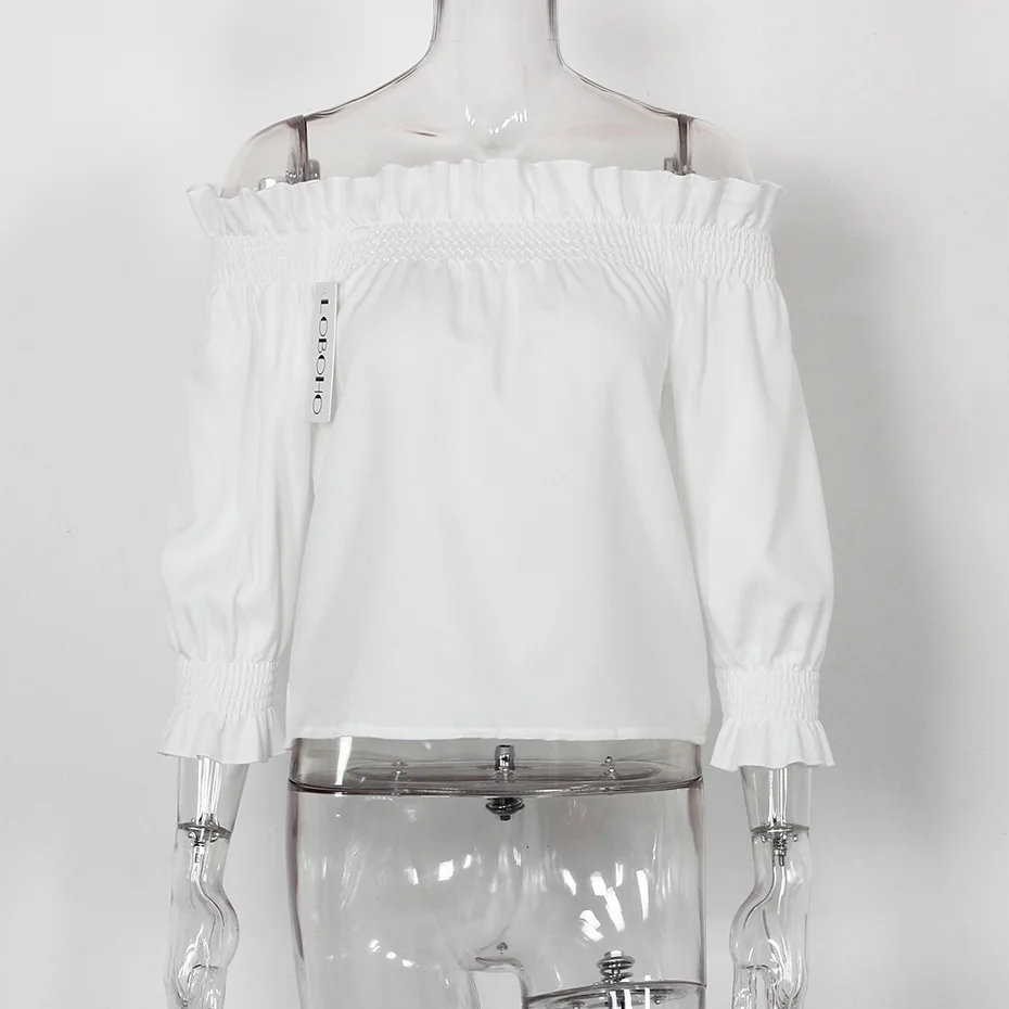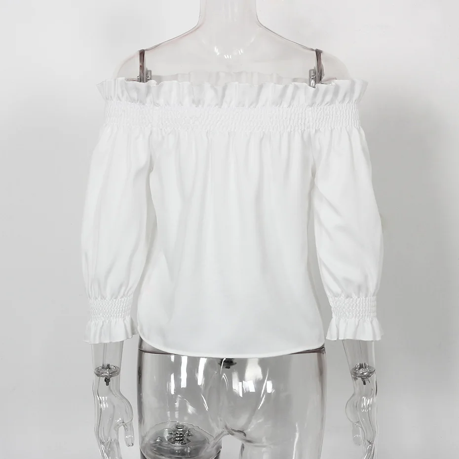 Off Shoulder Shirt White Fashion 2018 Summer Tops And Blouses Women Slash Neck Casual Ruffle Chiffon Blouse With Puff Sleeve