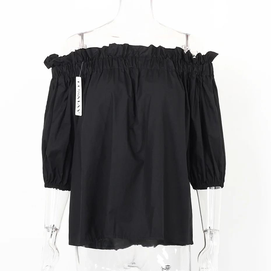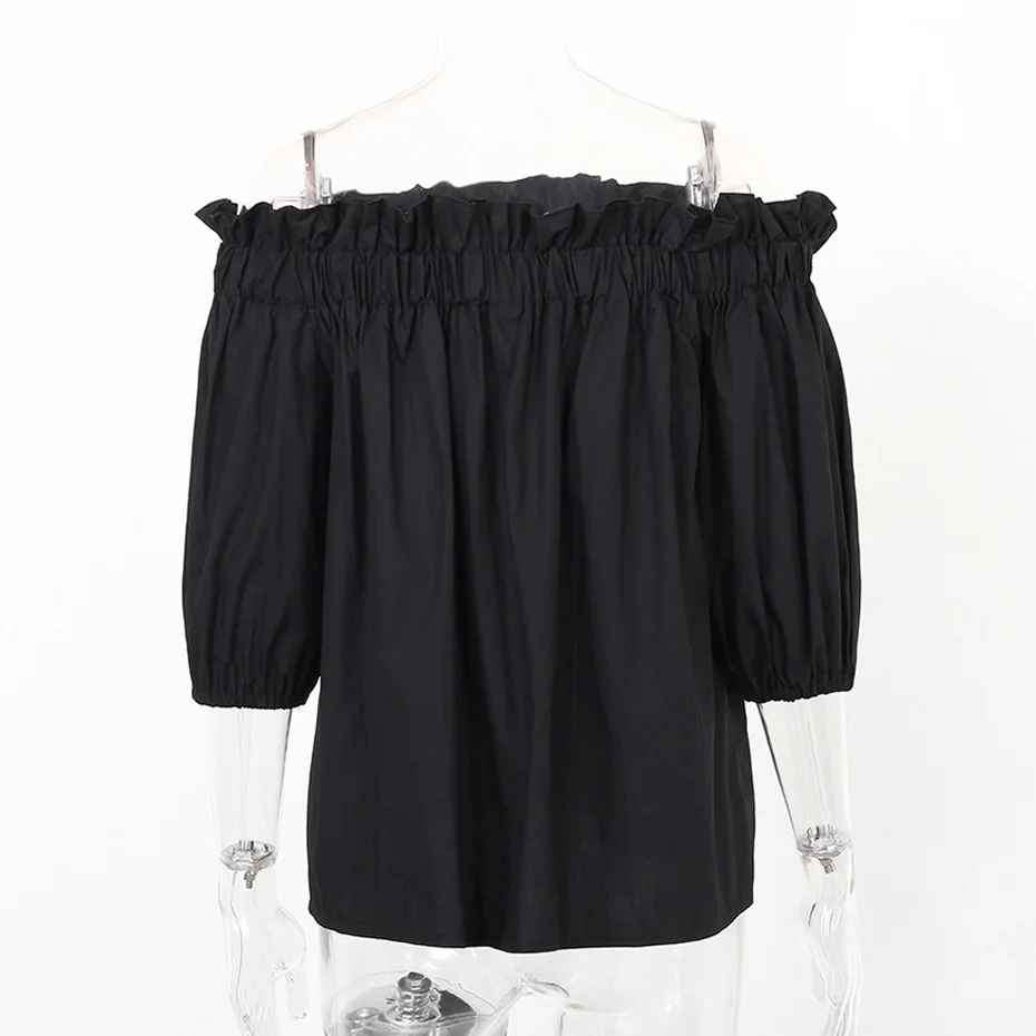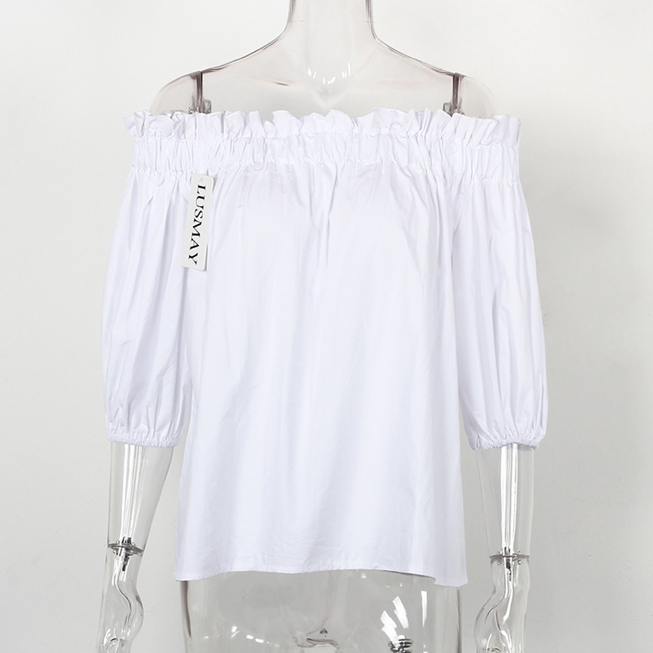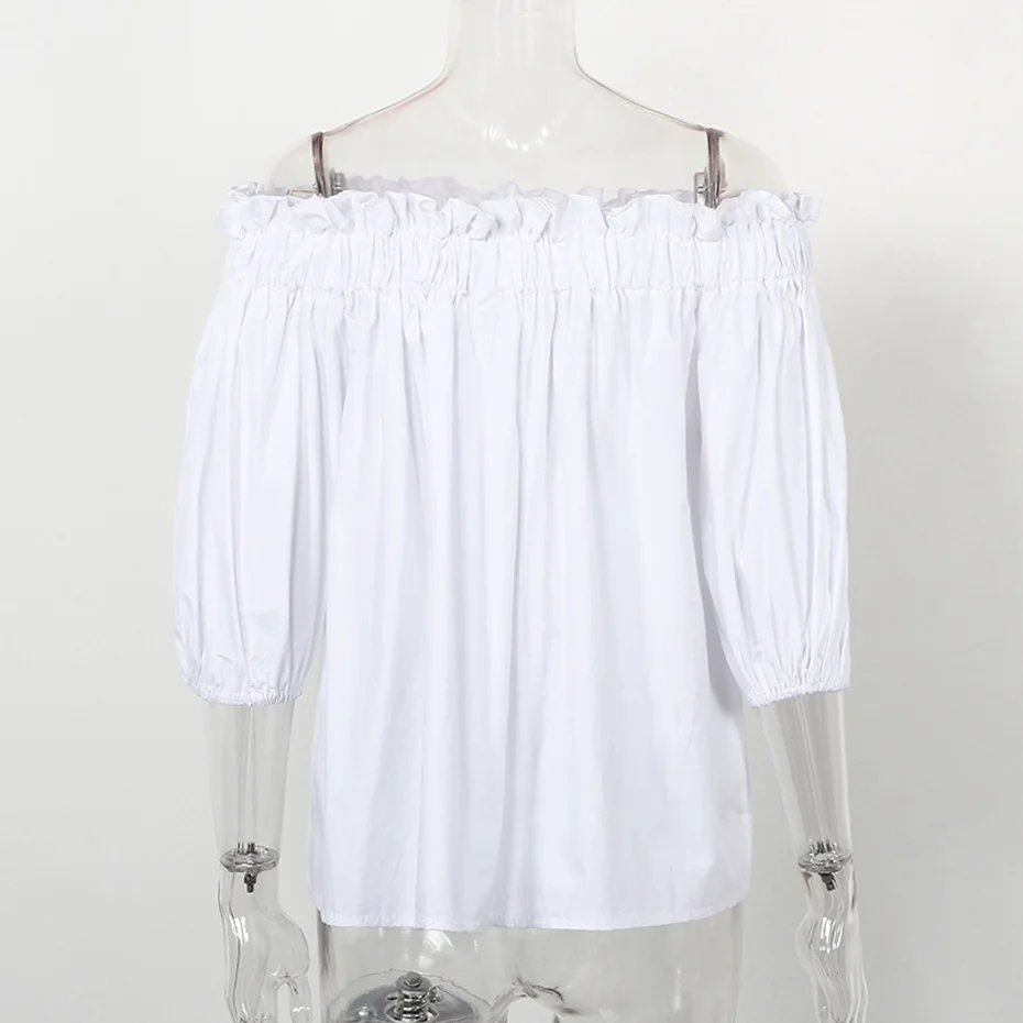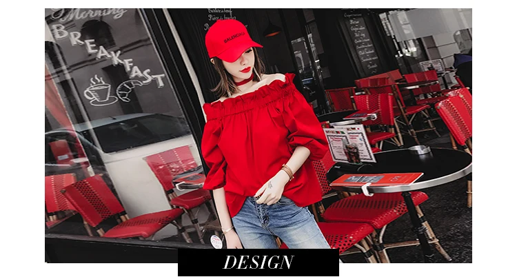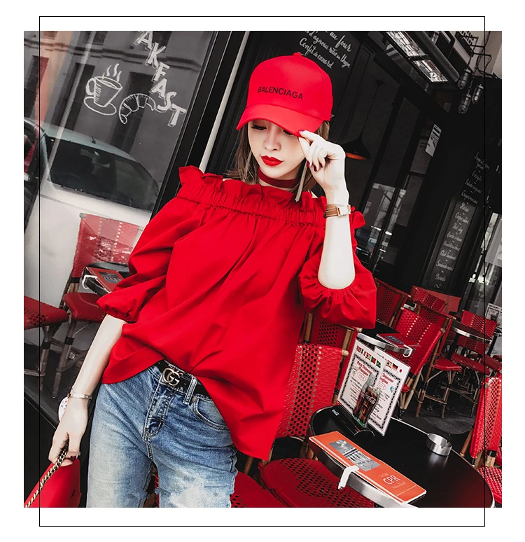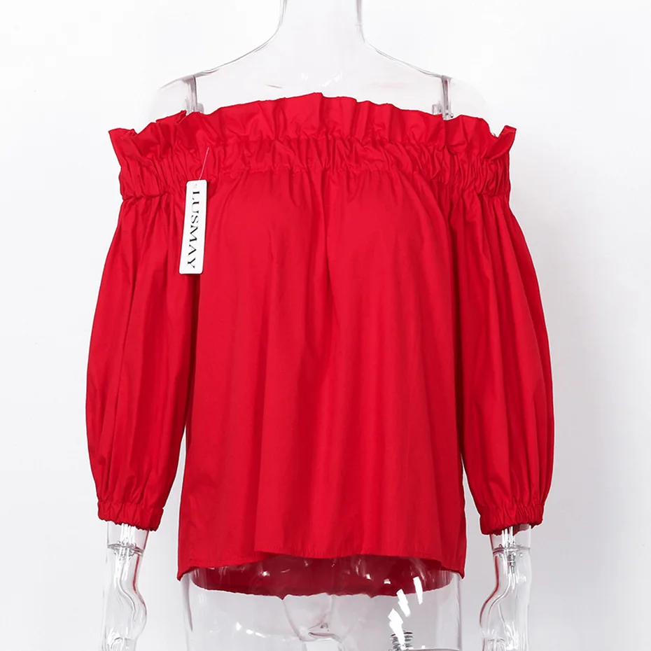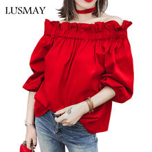 Off Shoulder Tops Women 2018 Summer Fashion Casual Slash Neck Blouse White Black Red Lantern Sleeve Loose Ruffle Blouses Womens