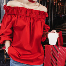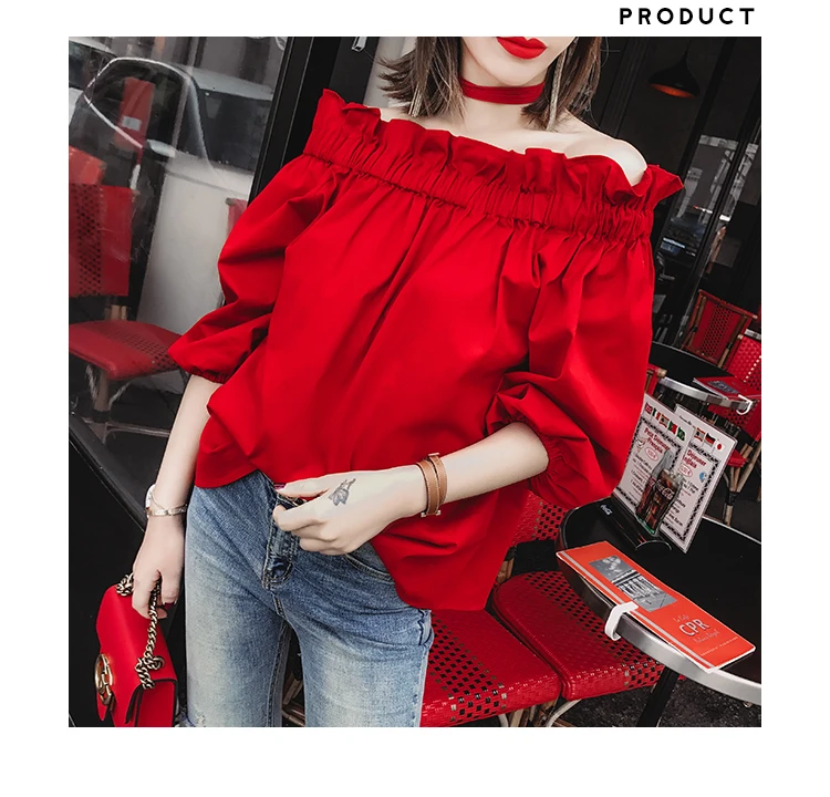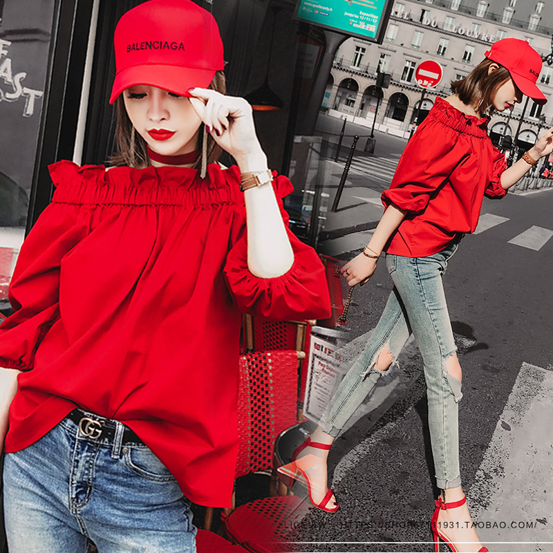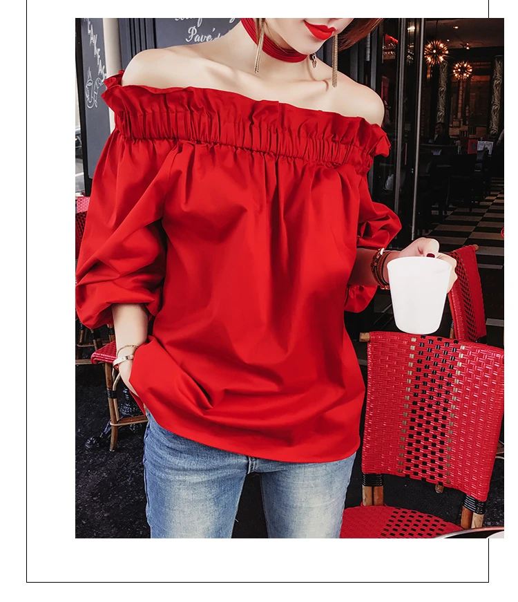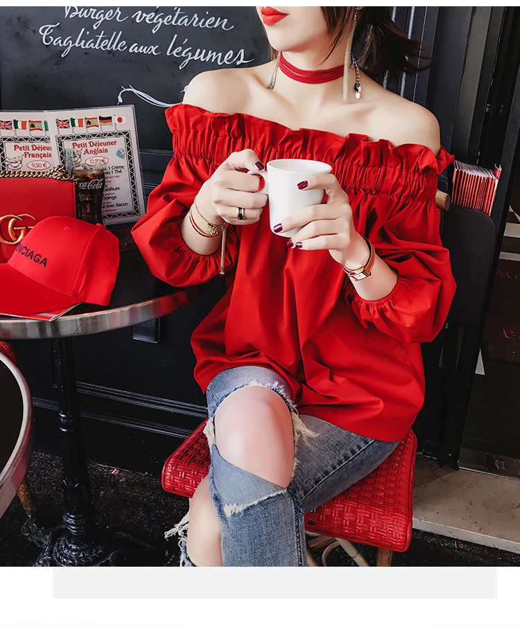 Product Name : Off Shoulder Tops Women Spring 2018 Fashion Casual Slash Neck Blouse Red Lantern Sleeve Loose Ruffle Blouses Womens Clothing