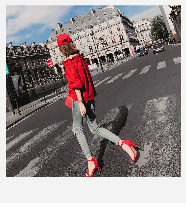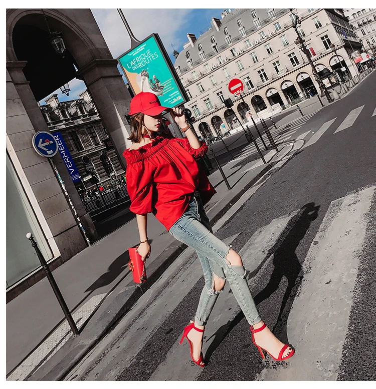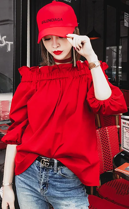 Product Name : Off Shoulder Tops Women Spring 2018 Fashion Casual Slash Neck Blouse Red Lantern Sleeve Loose Ruffle Blouses Womens Clothing