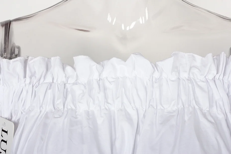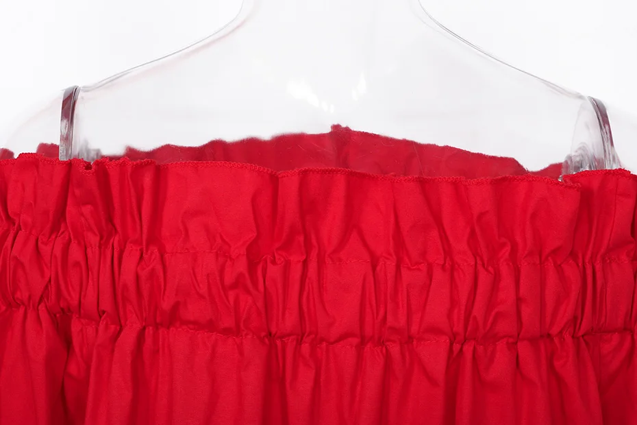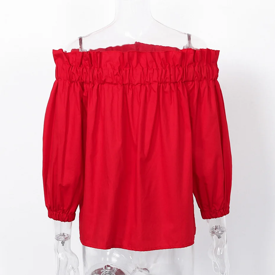 Off Shoulder Tops Women 2018 Summer Fashion Casual Slash Neck Blouse White Black Red Lantern Sleeve Loose Ruffle Blouses Womens
