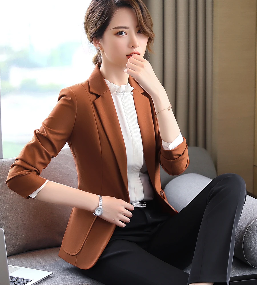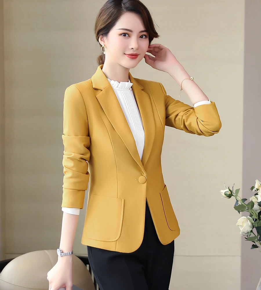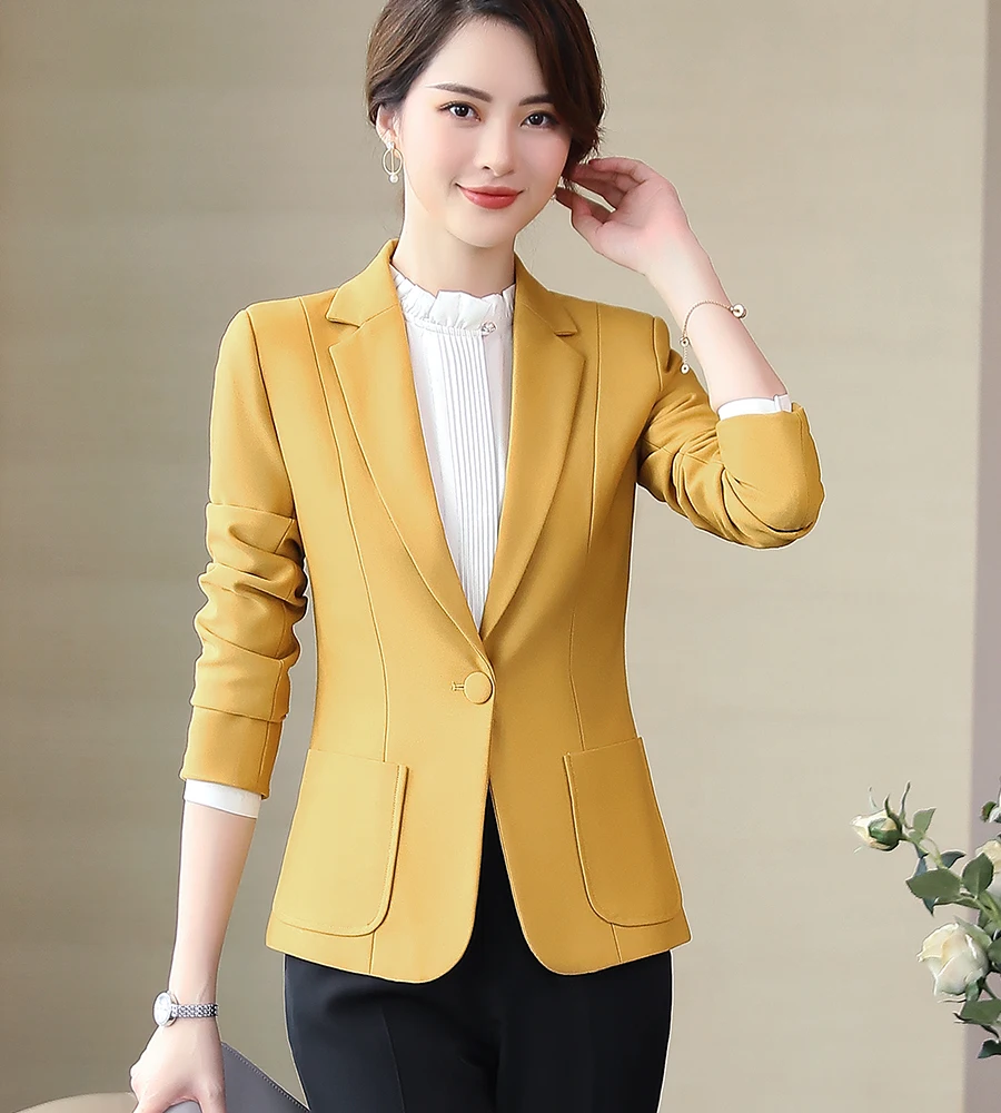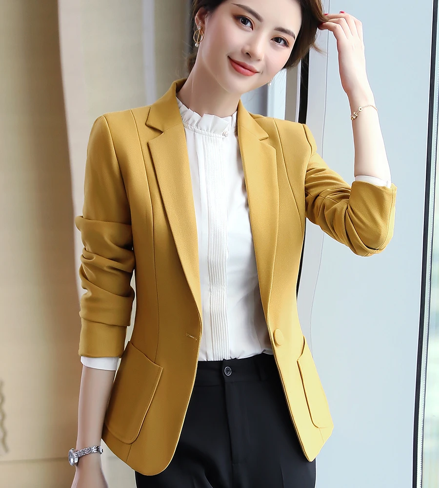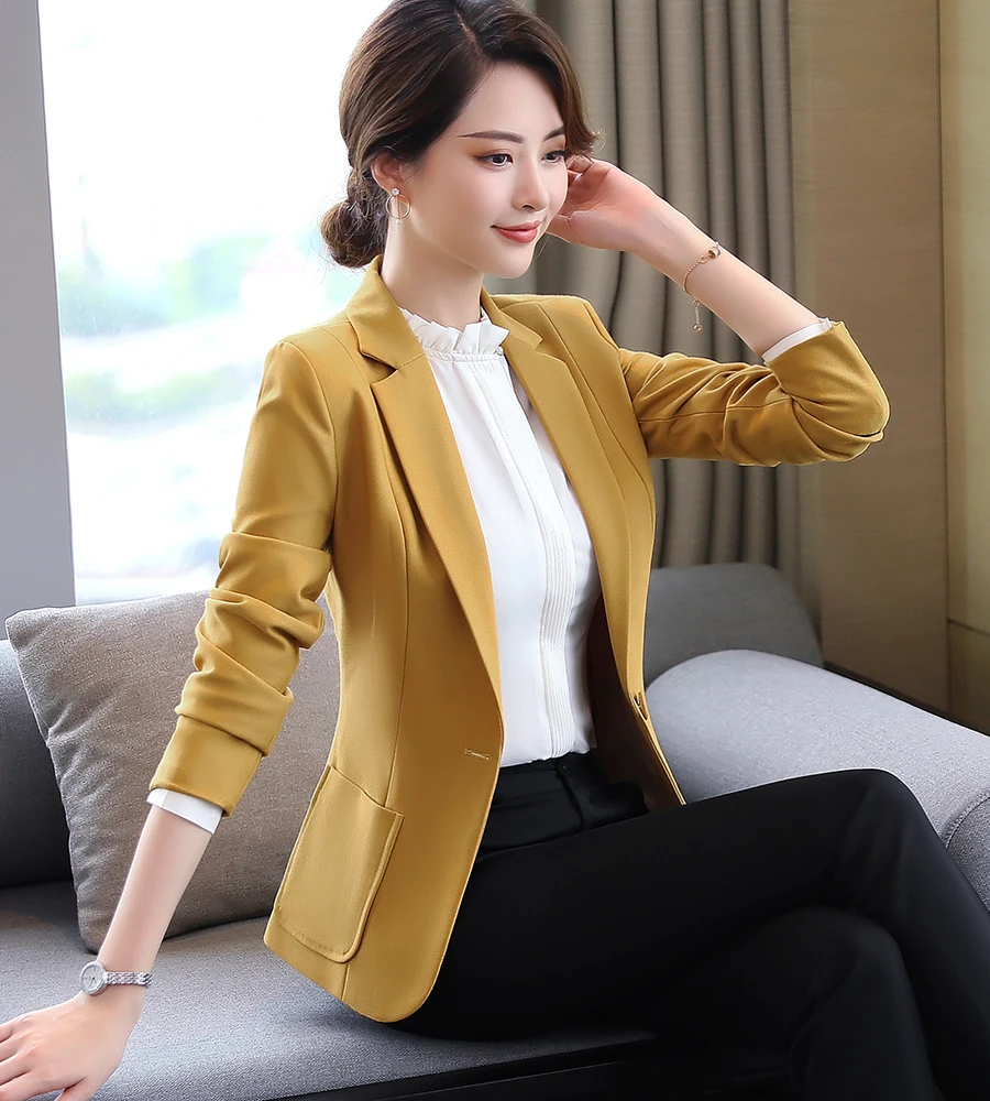 office ladies plus size 5XL work wear coat women blazer black yellow red brown winter elegant formal long sleeve slim jacket