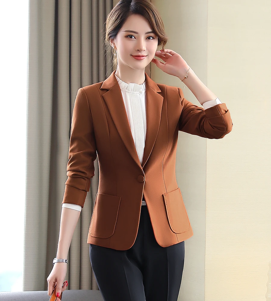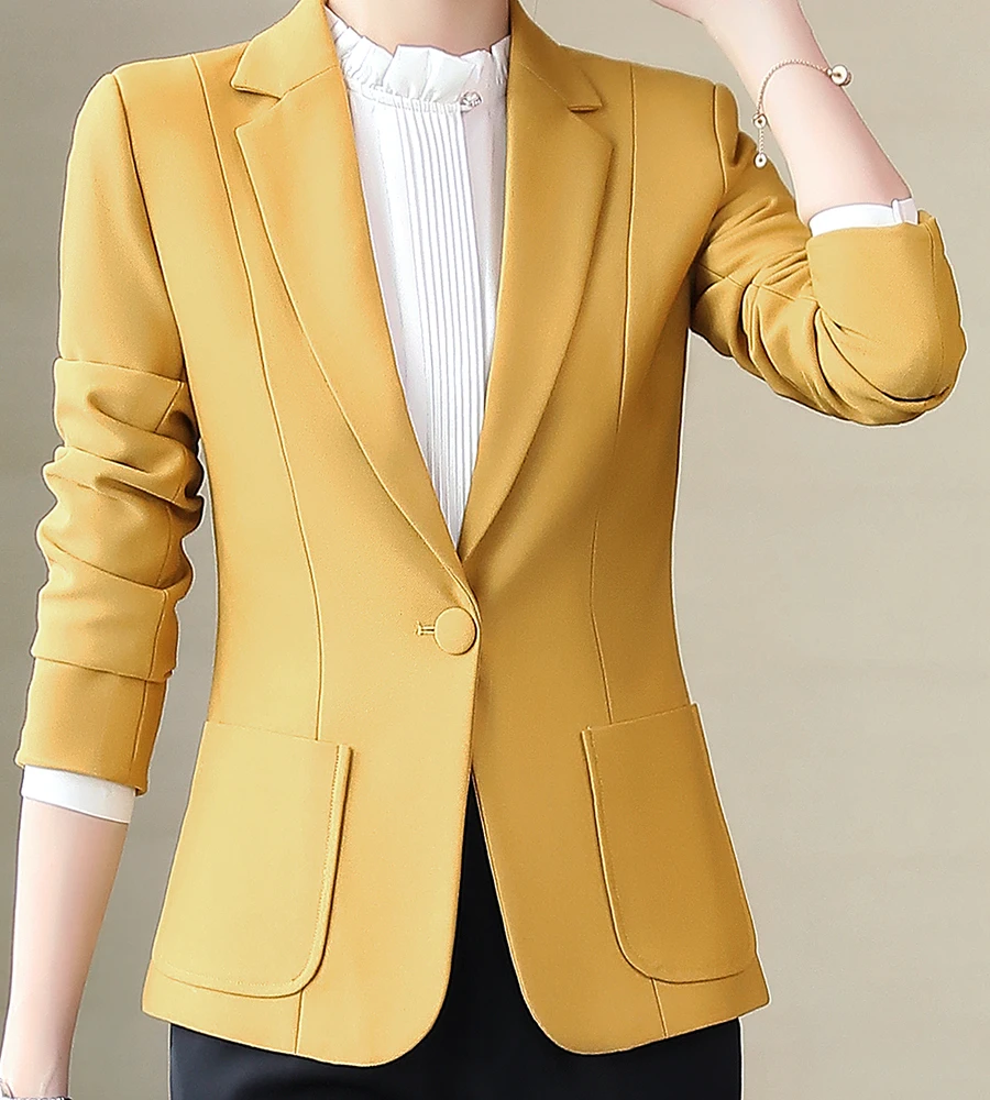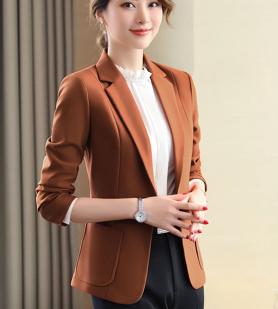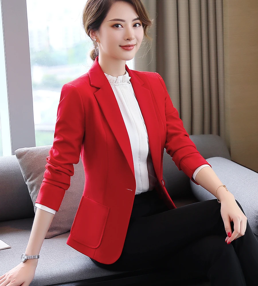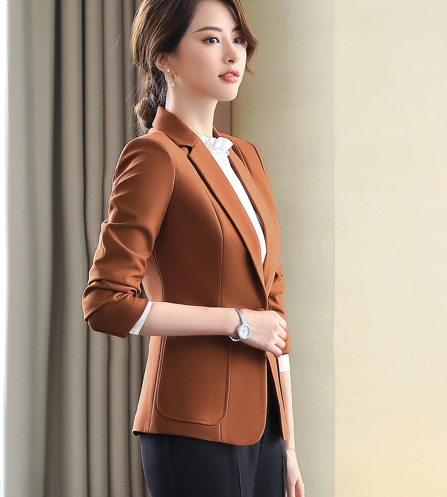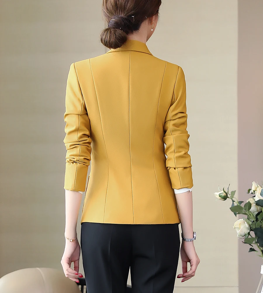 office ladies plus size 5XL work wear coat women blazer black yellow red brown winter elegant formal long sleeve slim jacket