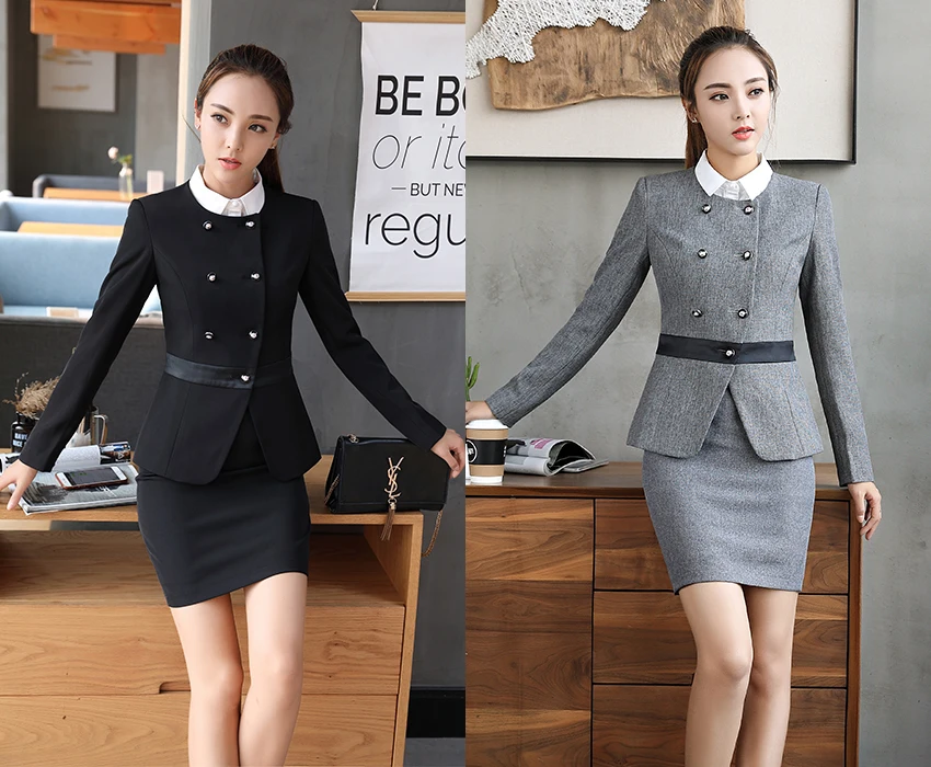Office uniform female S-4XL formal skirt suits two pieces set for work 2018 new arrival womens winter business suits grey black