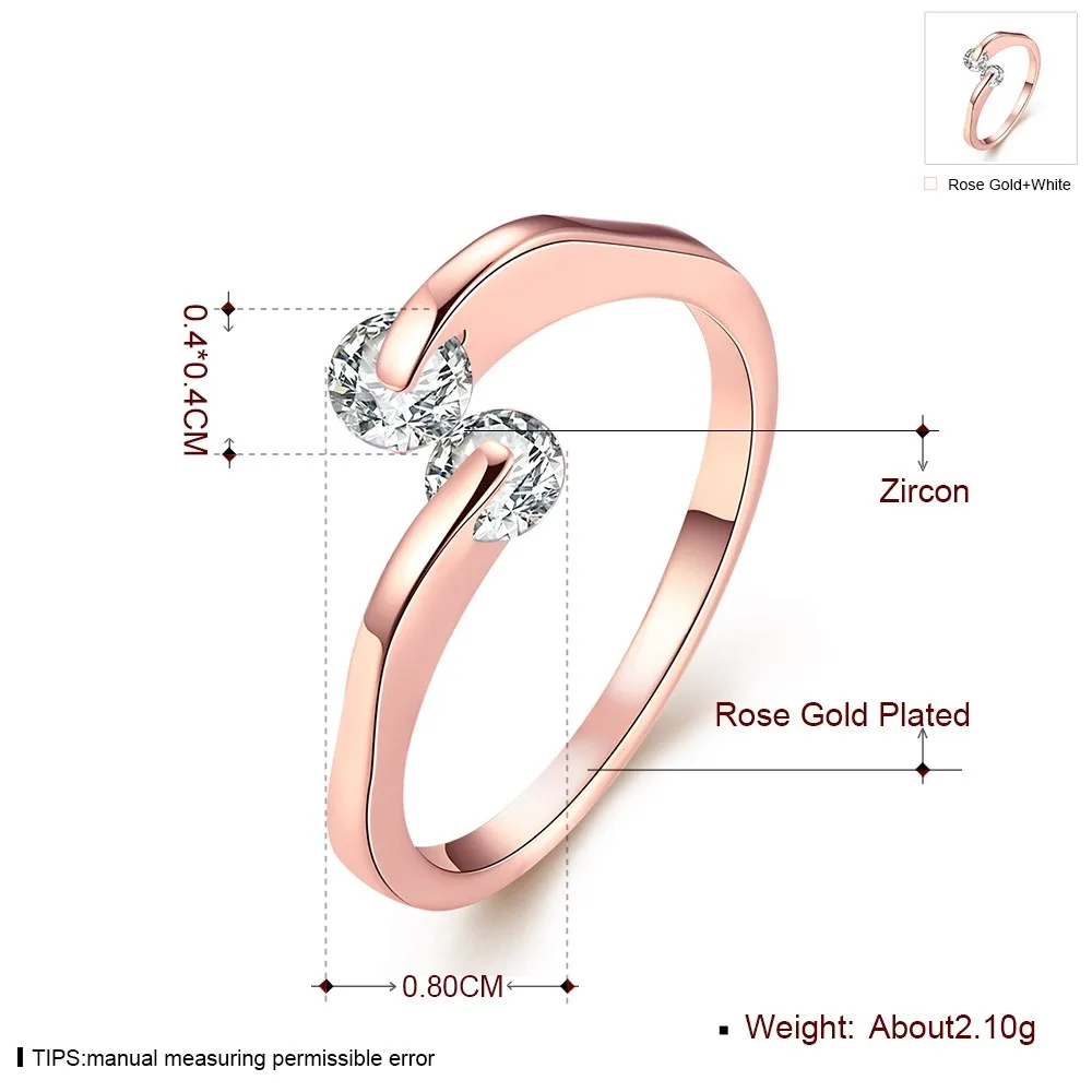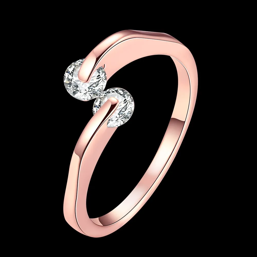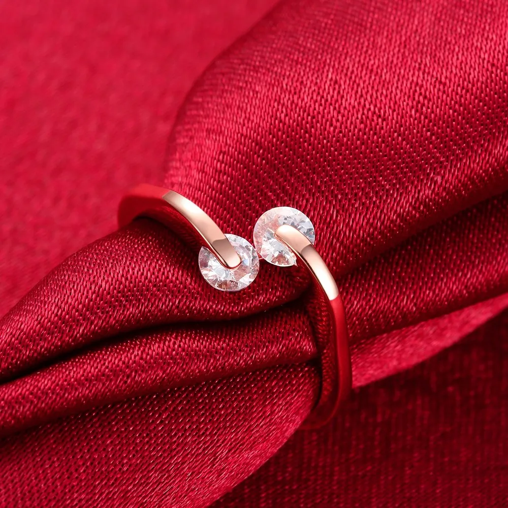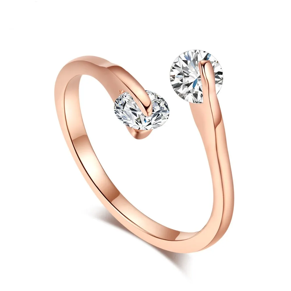 OL Style Adjustable Twin CZ zircon Ring Rose Gold colour Tone Engagement/Wedding Crystal Rings For Women