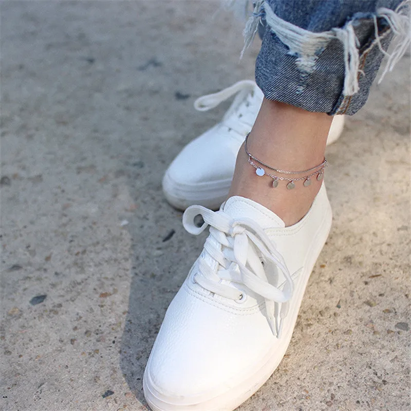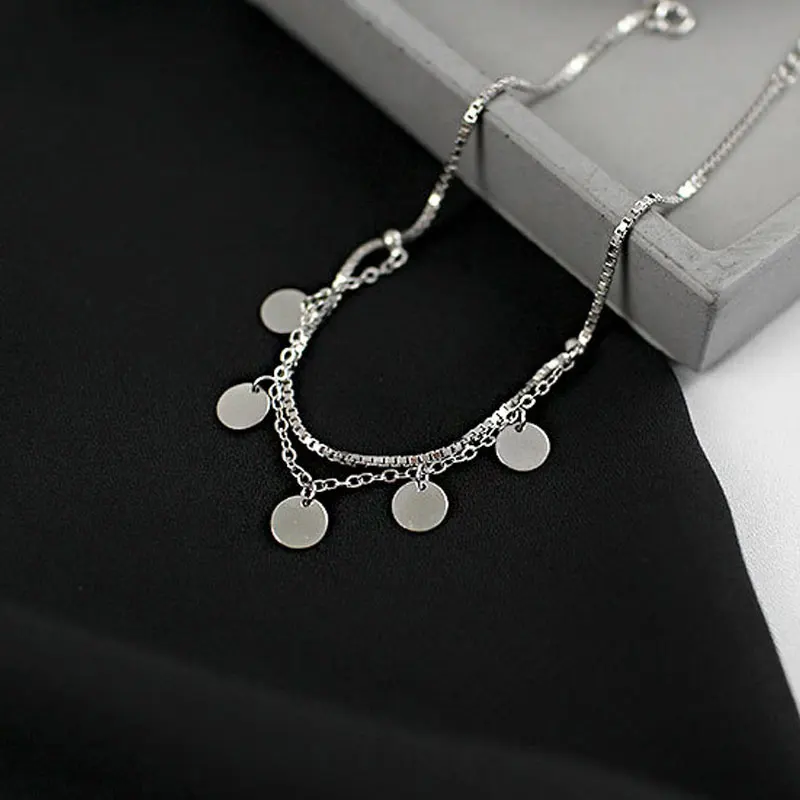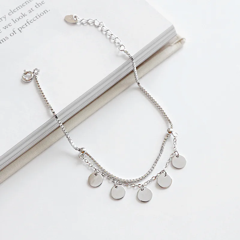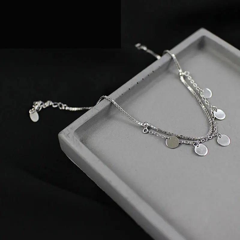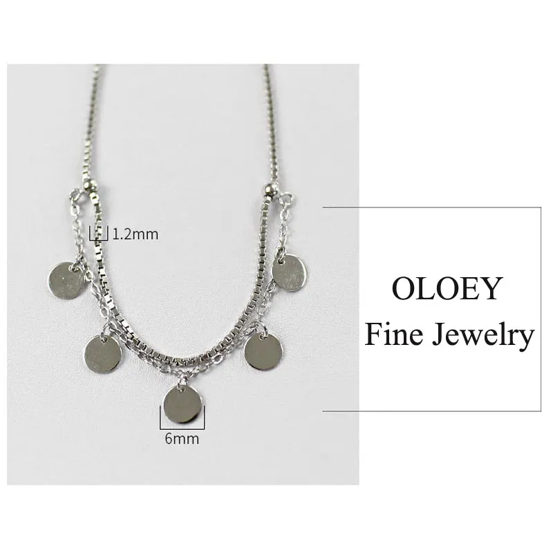 OLOEY Box Chain Disc Ankles for Women Girls Genuine 925 Sterling Silver Foot Bracelets Fine Accessories Jewelry Wholesale