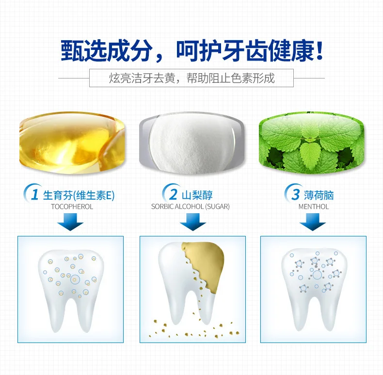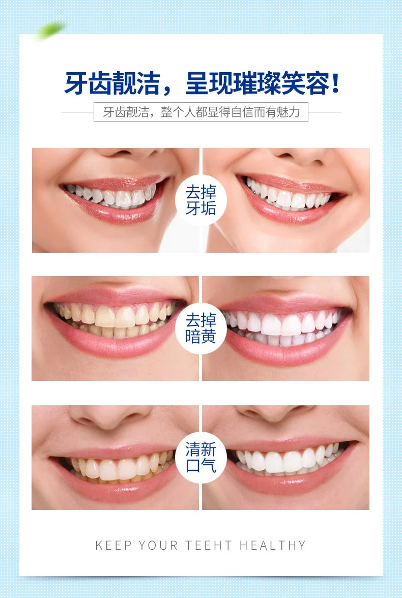 Efficacy:Contain mint essence extract,remove yellow dirt on the teeth,can be apply to various of Smoke stains,tea stains,coffee stains,and the yellow teeth,dark teeth,which cause by unhealthy lifestyle and bad habites